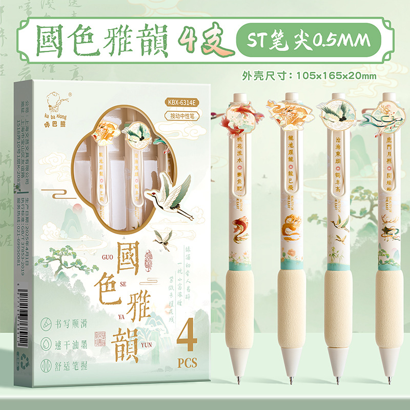 咔巴熊四支装亚克力贴片笔可爱玫瑰少女按动笔中性笔学生黑笔速干