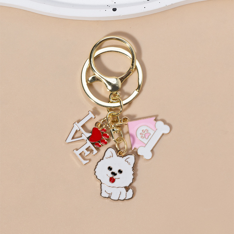 可爱小狗钥匙扣中国风卡通少女心金属挂件男女情侣挂饰纪念品礼物