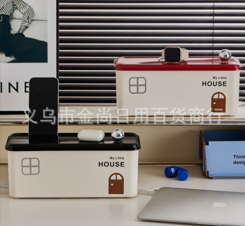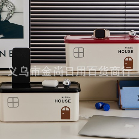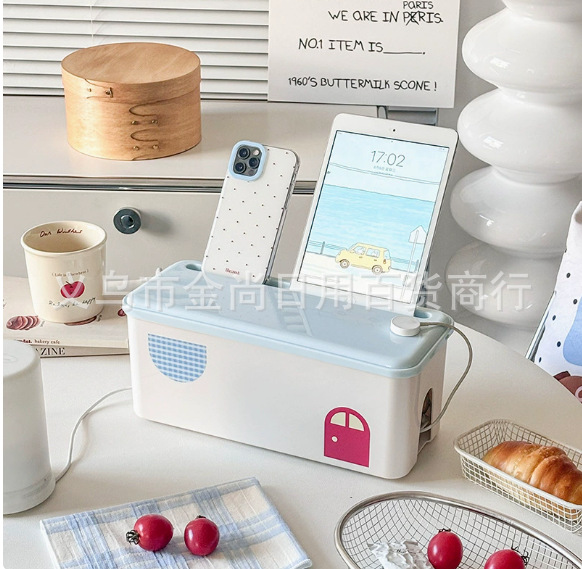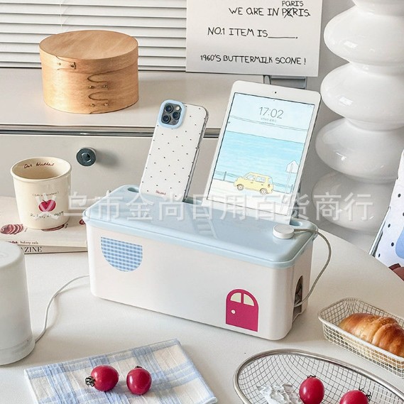 多巴胺插线板收纳盒家用数据线收纳集线盒桌面防尘多功能理线盒