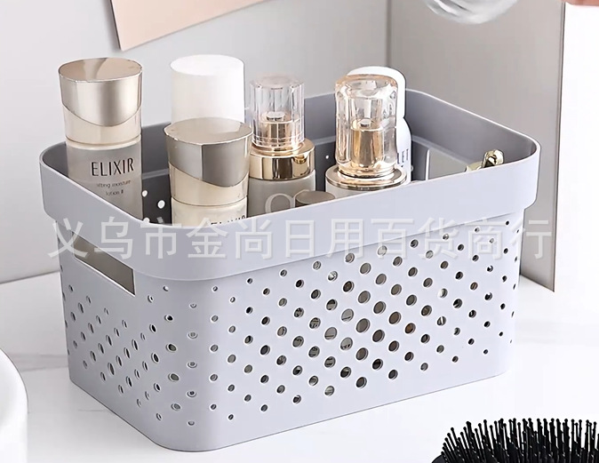 新款欧式收纳筐带盖防尘收纳篮子塑料加厚镂空收纳框置物筐ins风
