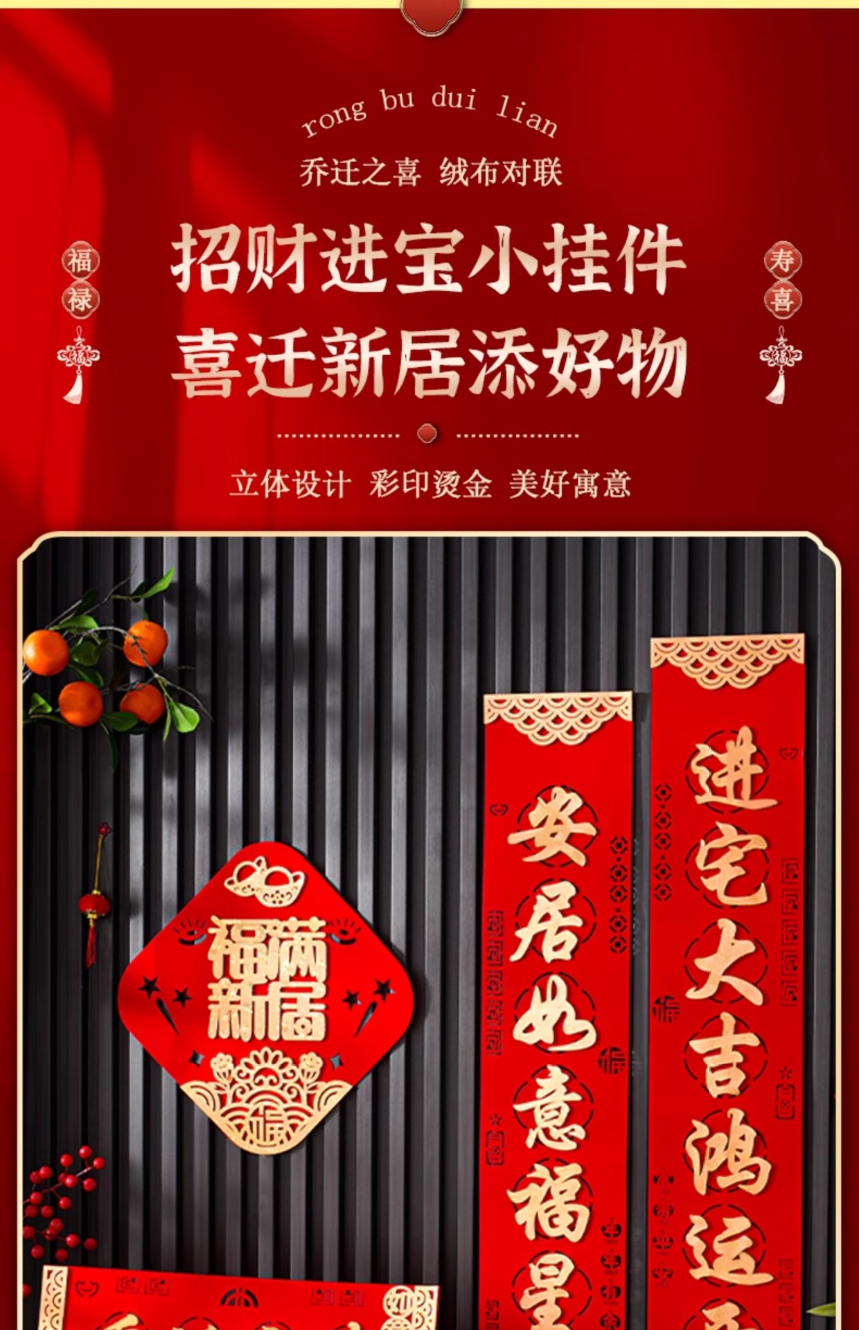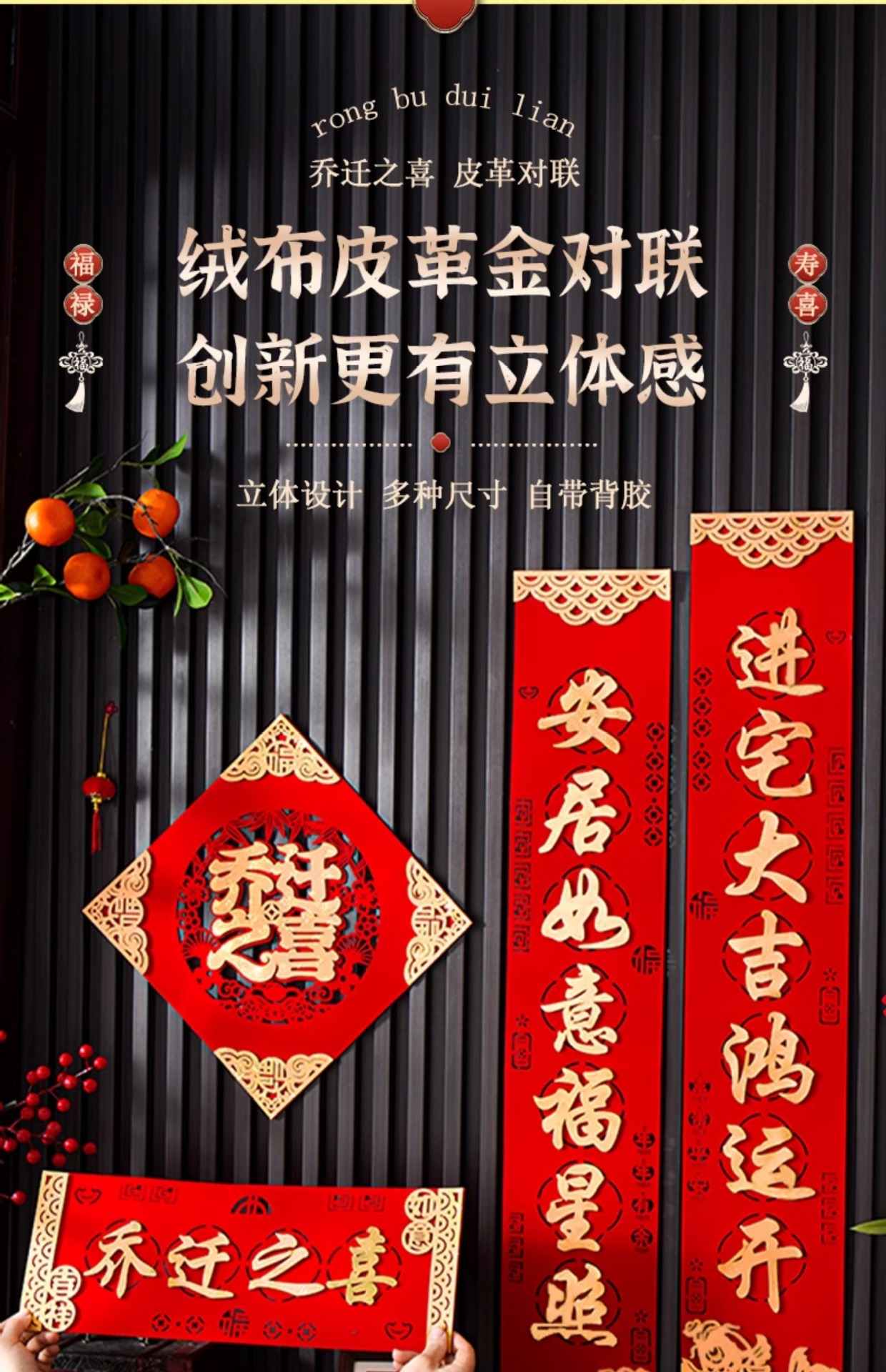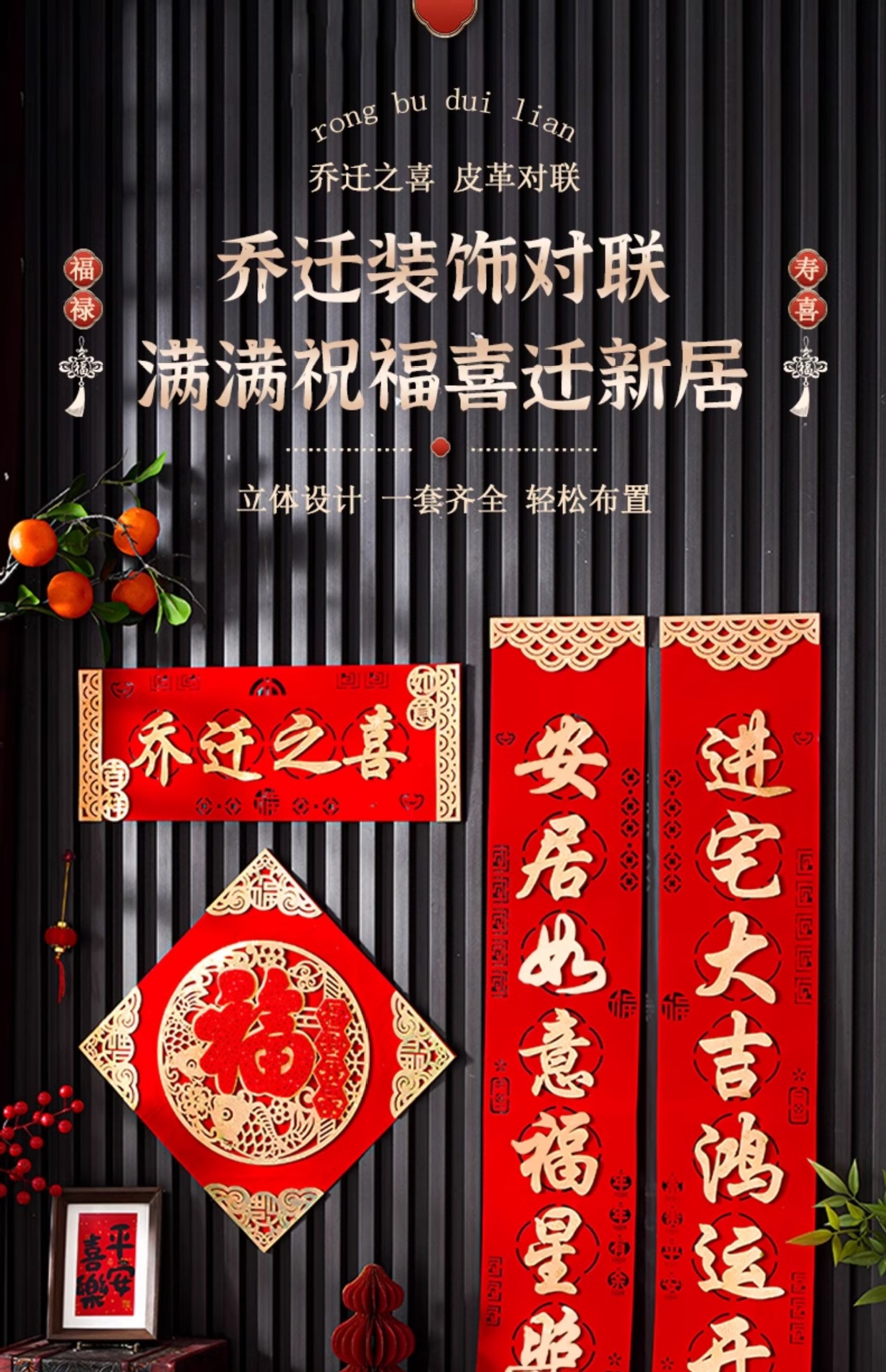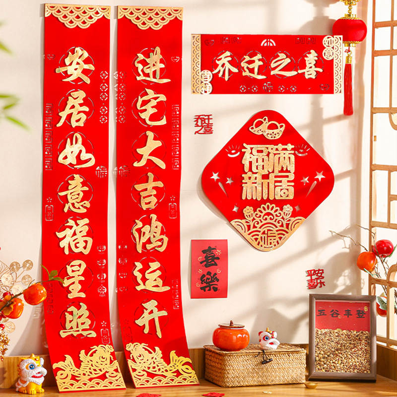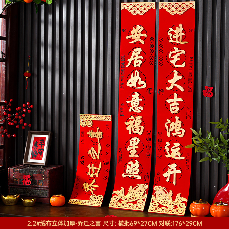 乔迁之喜对联绒布自粘搬家入宅仪式用品新居布置皮革高档装饰礼物
