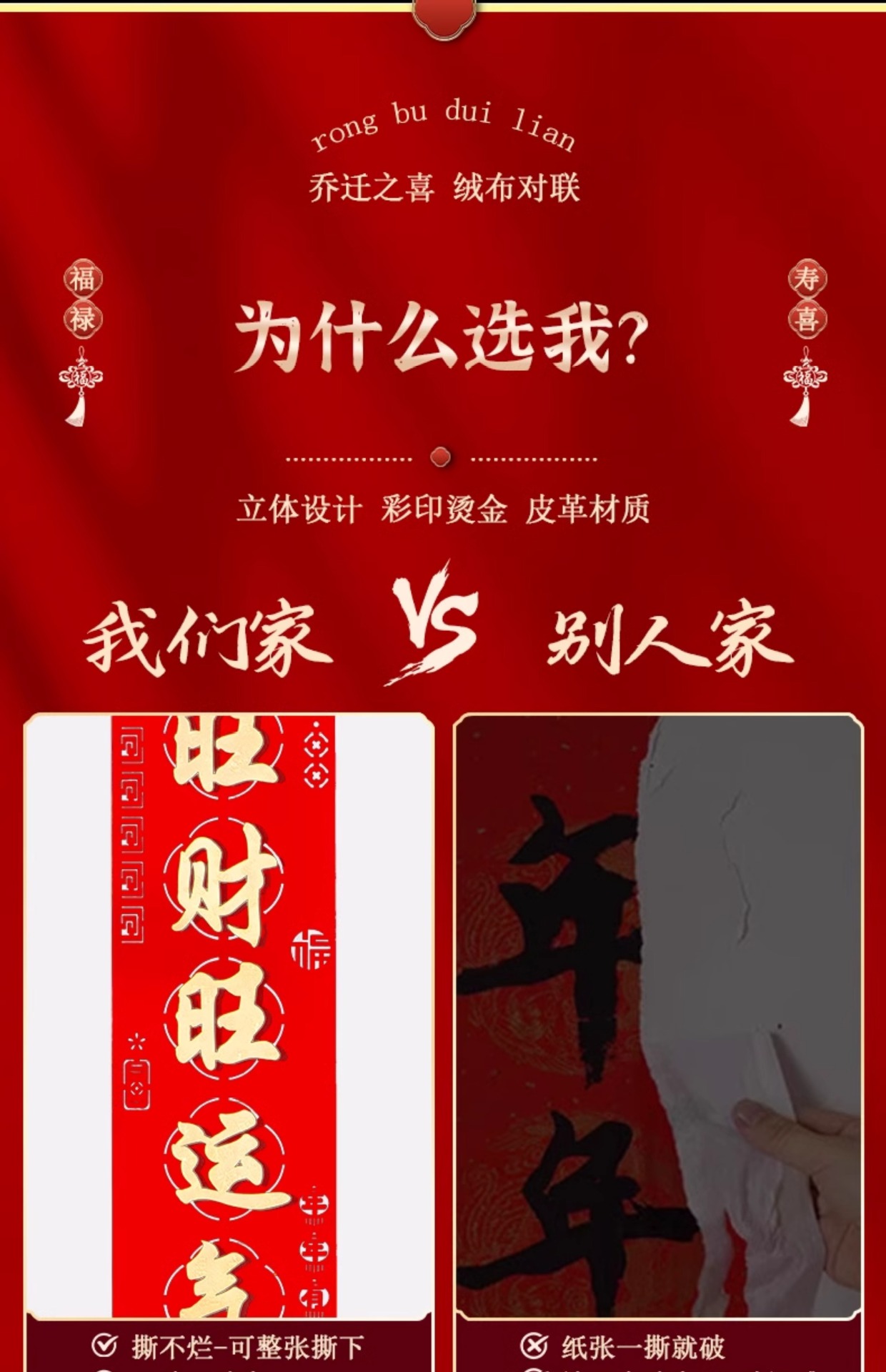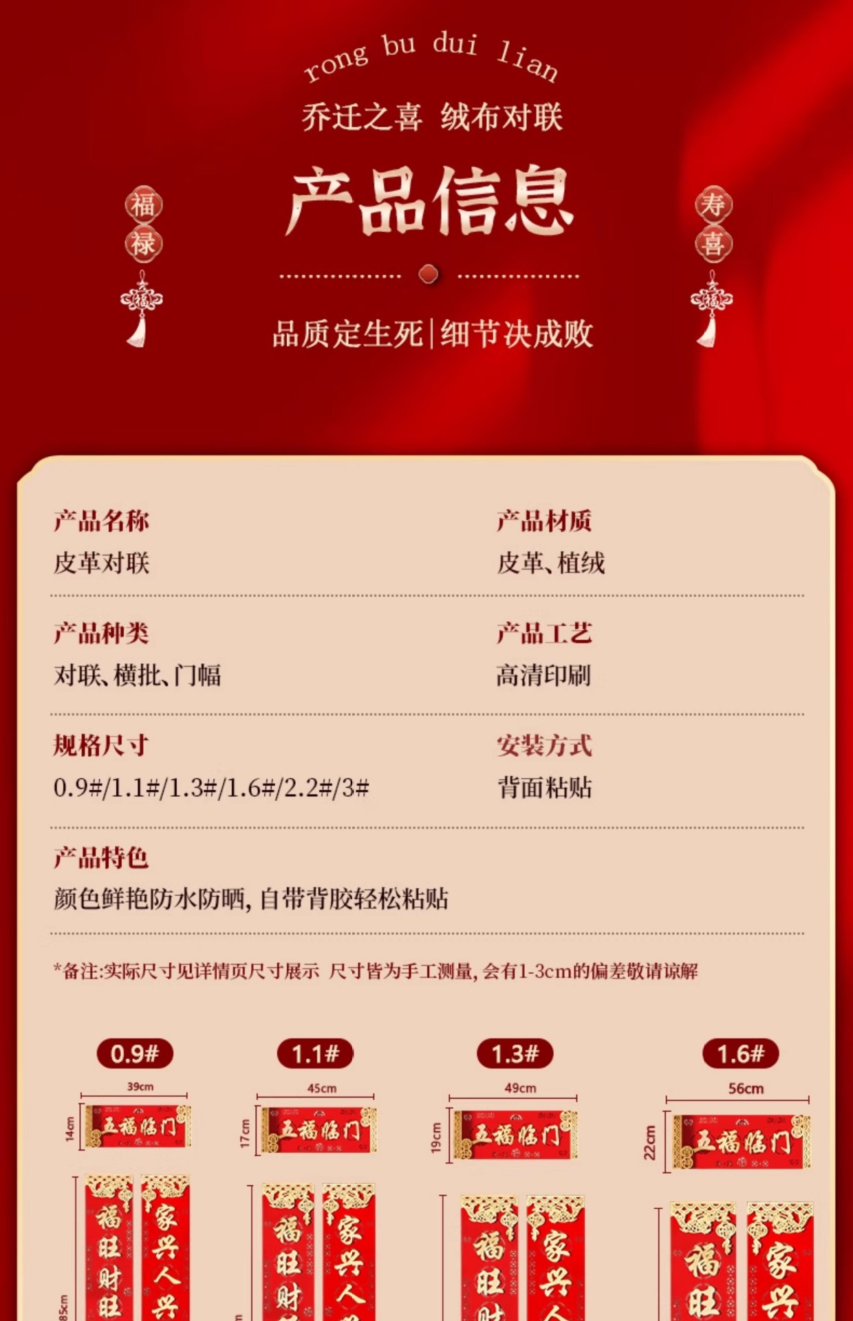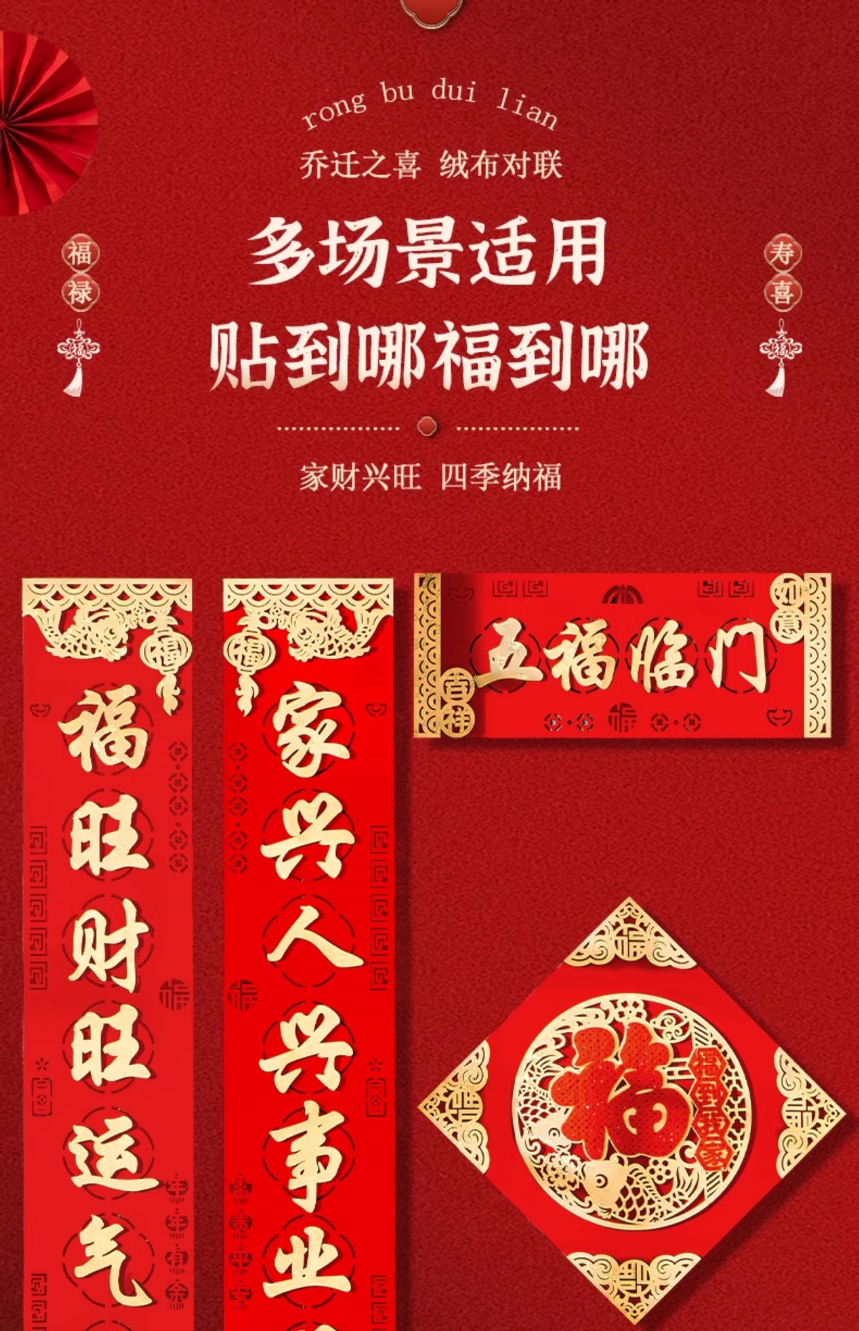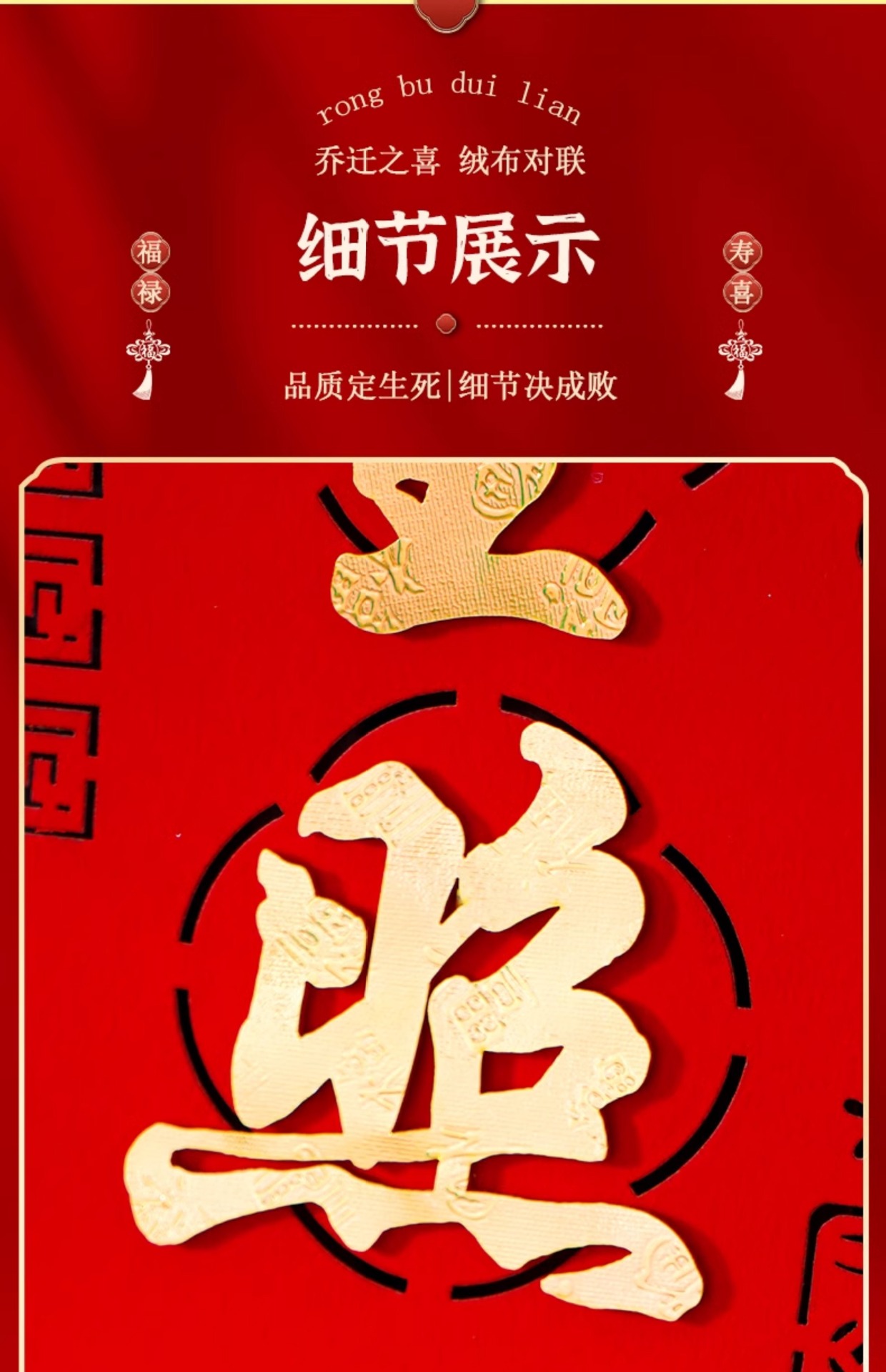 乔迁之喜对联绒布自粘搬家入宅仪式用品新居布置皮革高档装饰礼物