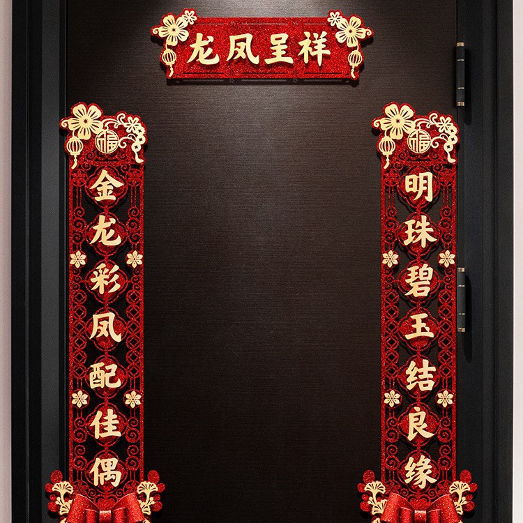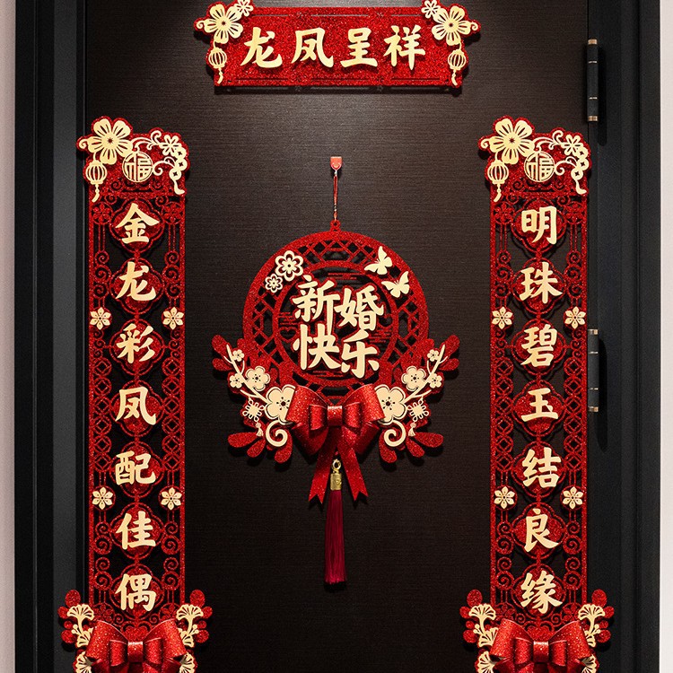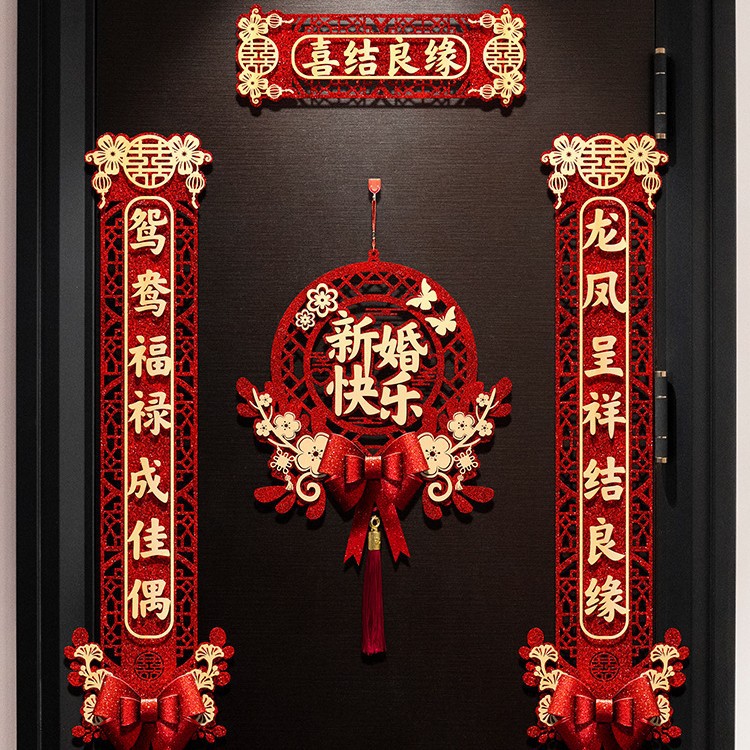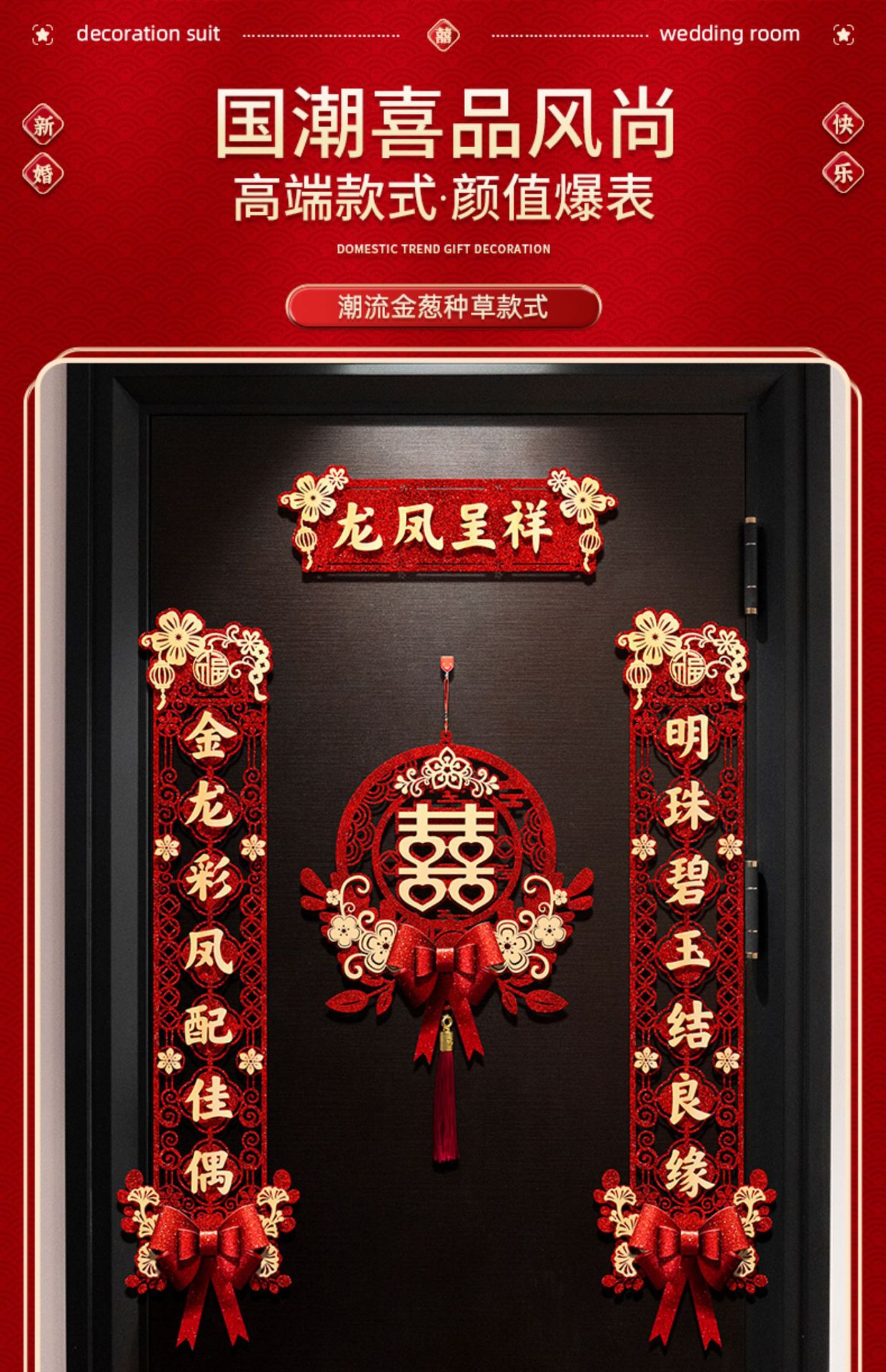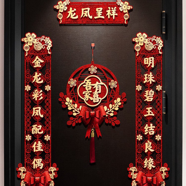 结婚对联男方大门喜字婚房喜联全套新婚女方出嫁房门布置用品大全