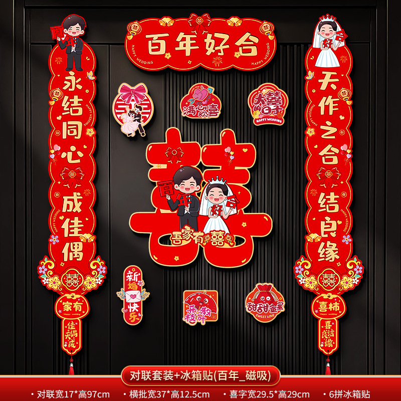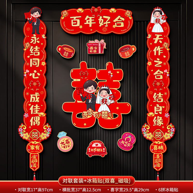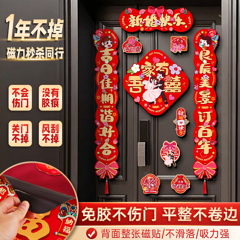 结婚磁吸对联喜字贴男方婚房大门装饰婚礼女方入户门出嫁喜联全套