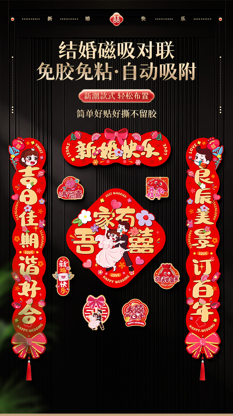 | wedding magnetic couplet [strong suction does not hurt the door] gift box(结婚磁吸对联【强吸不伤门】礼盒装) | USD $3.43 | 9540 piece available |