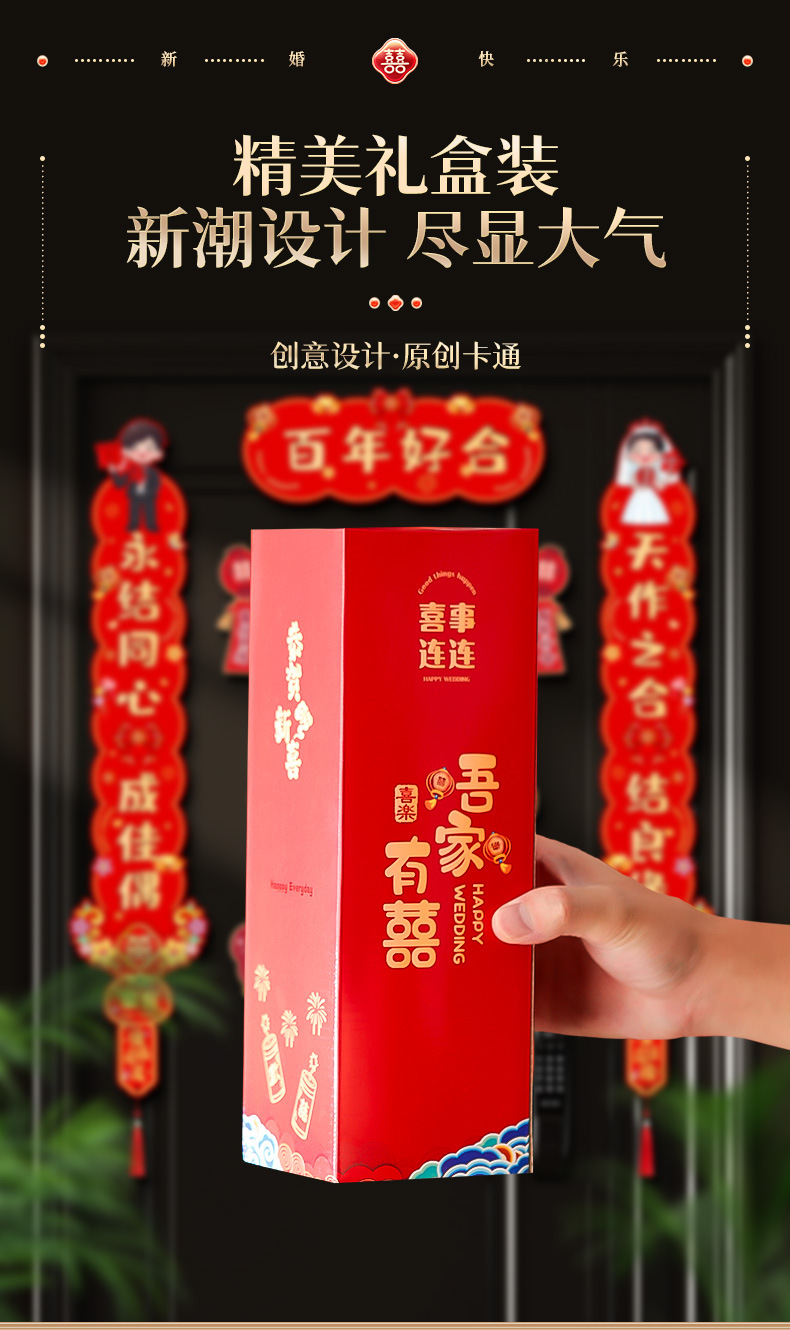 | wedding magnetic couplet [strong suction does not hurt the door] gift box(结婚磁吸对联【强吸不伤门】礼盒装) | USD $2.2 | 212 piece available |
