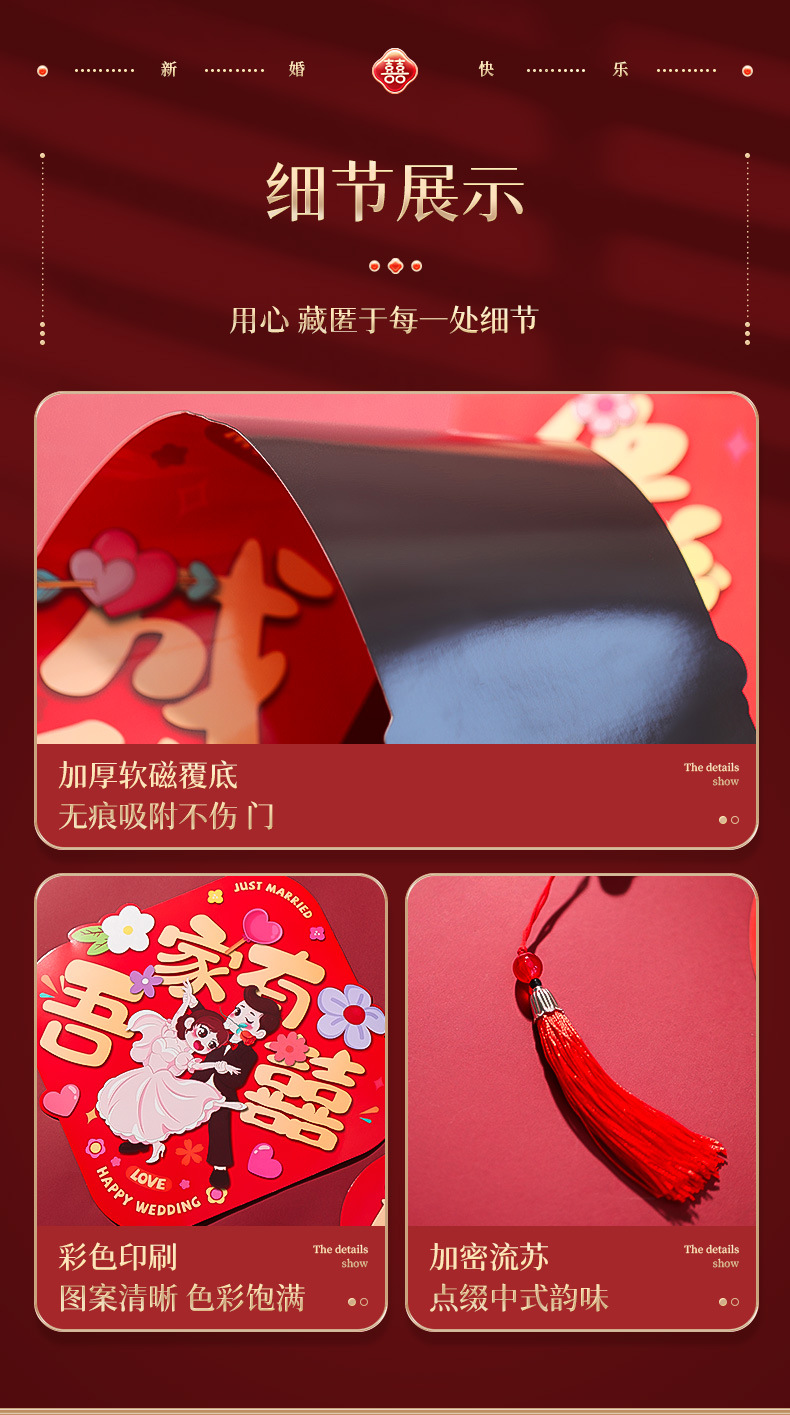 | wedding magnetic couplet [strong suction does not hurt the door] gift box(结婚磁吸对联【强吸不伤门】礼盒装) | USD $3.43 | 9539 piece available |