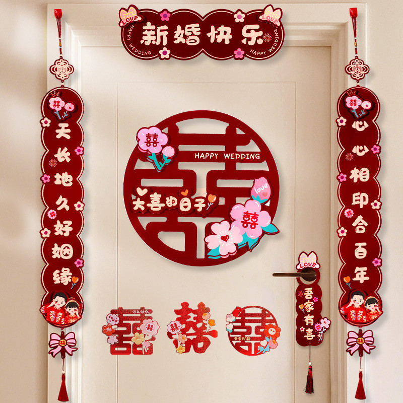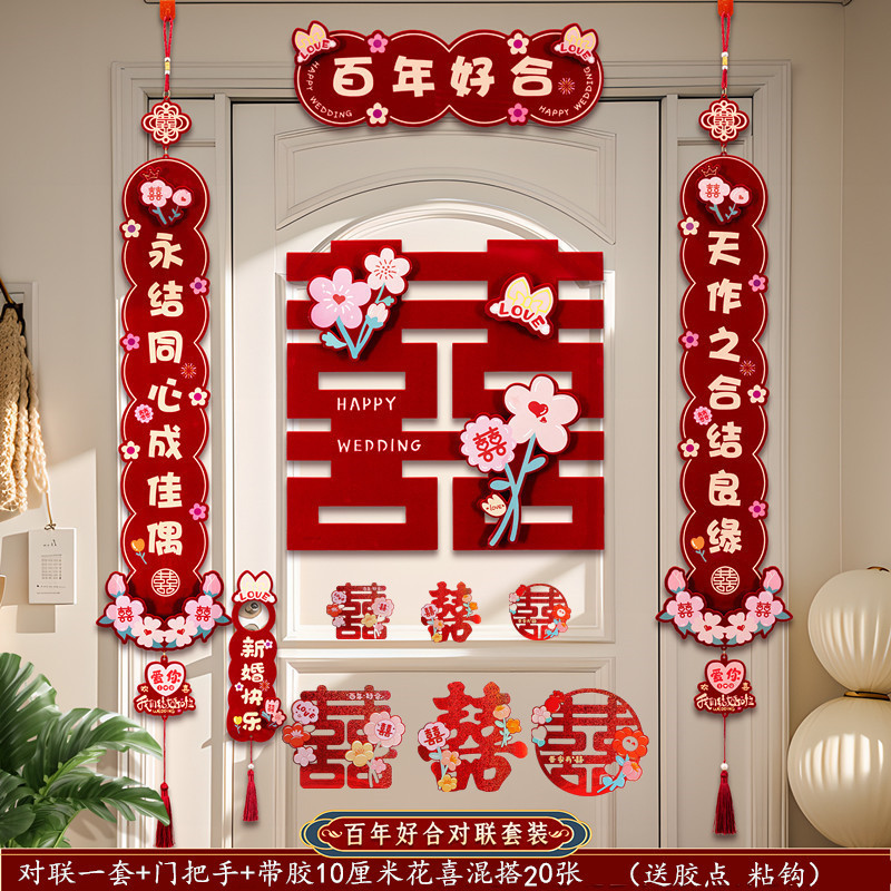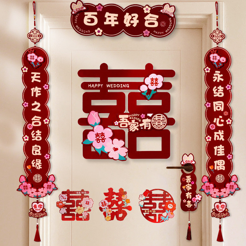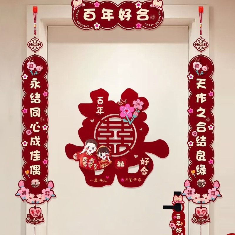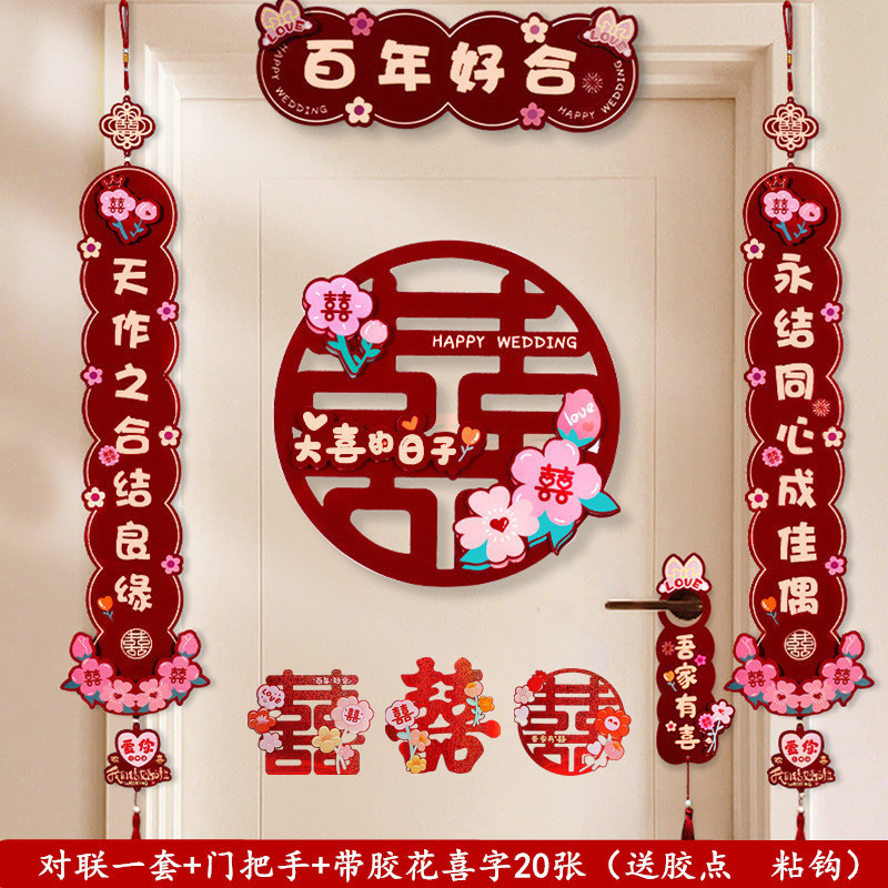 结婚对联男方大门门口婚礼女方出嫁喜字贴新婚庆用品全套婚房布置