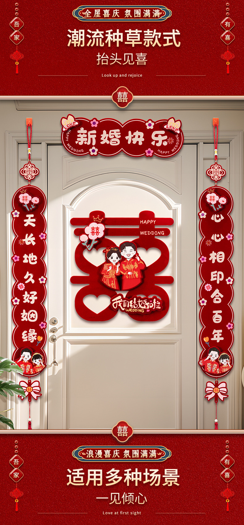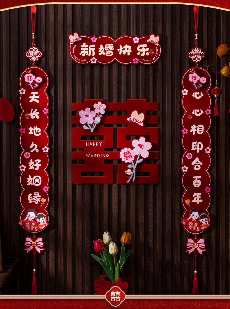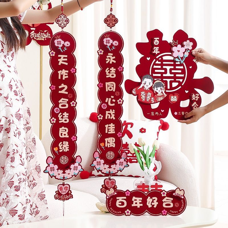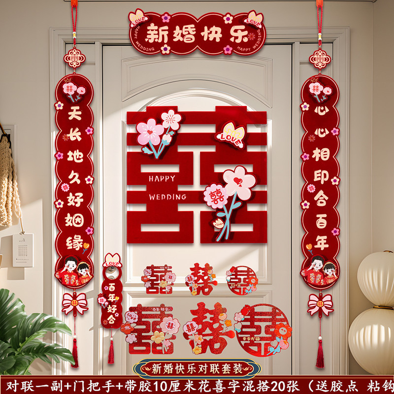 结婚对联男方大门门口婚礼女方出嫁喜字贴新婚庆用品全套婚房布置