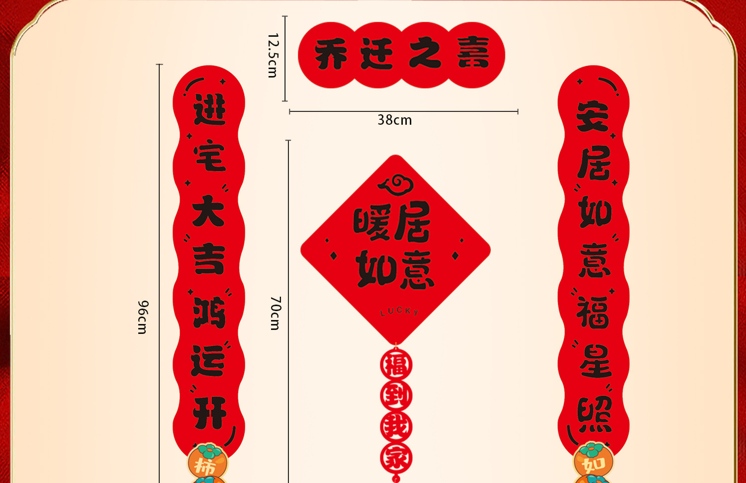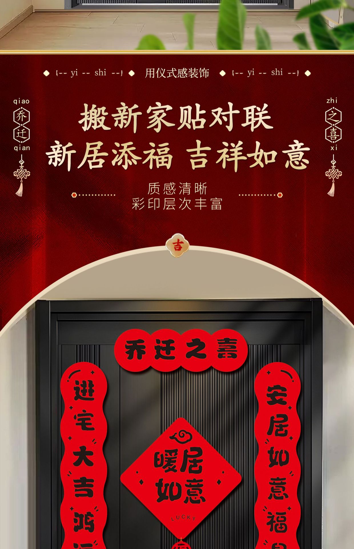 | housewarming couplet stickers [finished product delivery]](乔迁对联胶贴款【成品发货】) | USD $2.2 | 118 piece available |