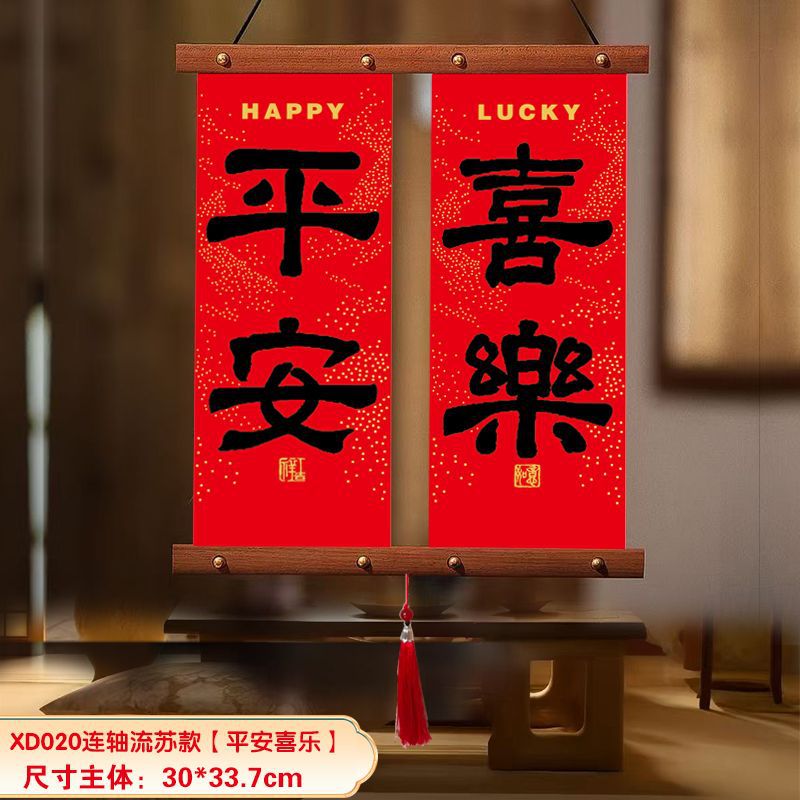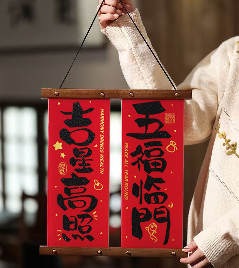 厂家木质挂轴绒布烫金小对联定制做乔迁新年福字入户装饰挥春批发