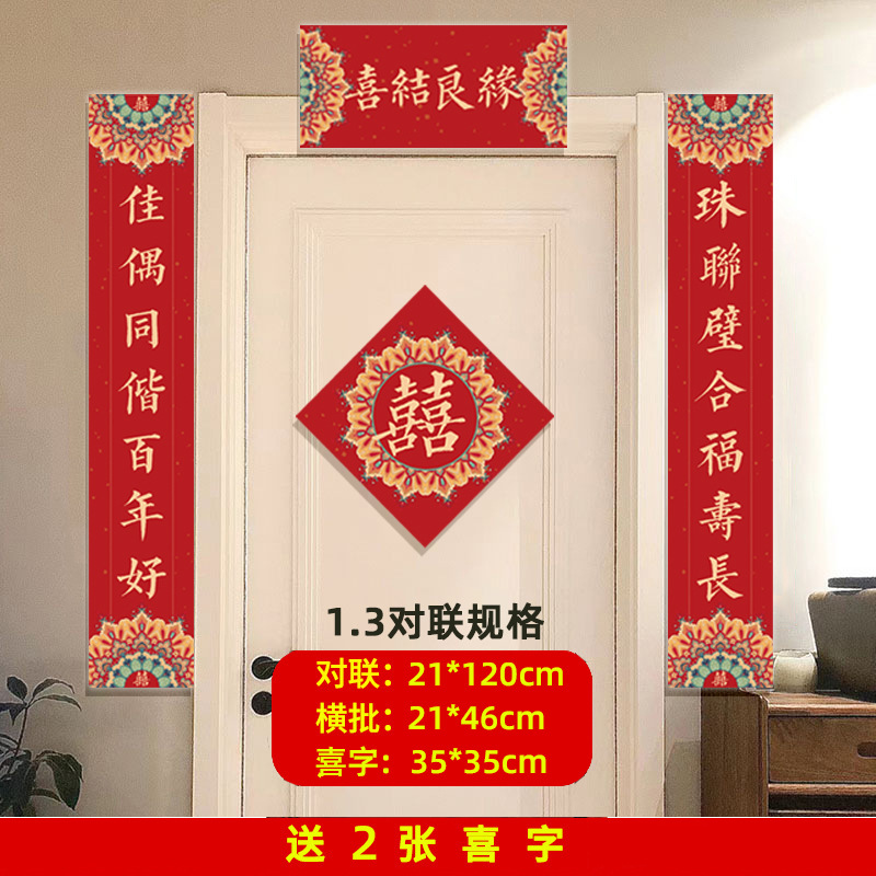 结婚对联新婚喜字喜联婚礼别墅农村大门2米房门男女方婚庆婚房云
