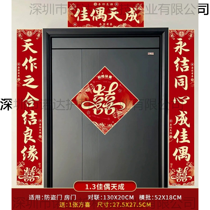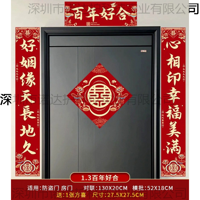 结婚对联男方农村大门喜联全套婚礼女方出嫁入户门喜字贴装饰