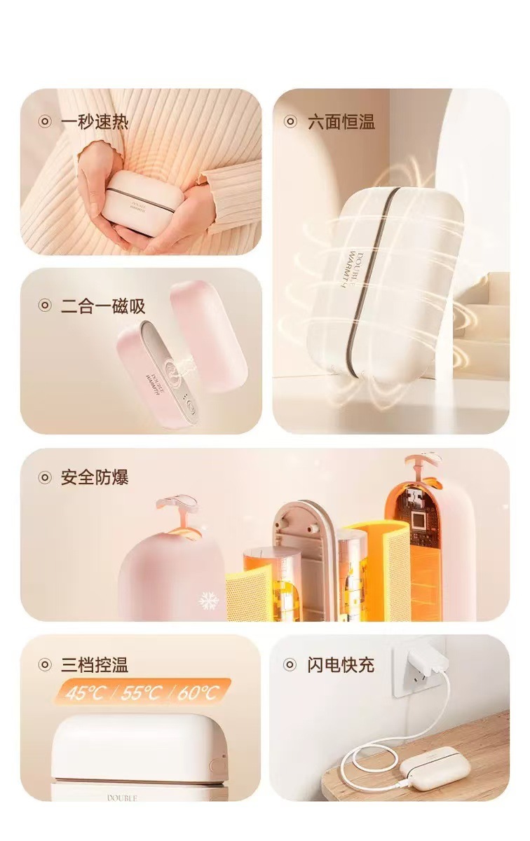 usb充电磁吸暖手宝便携分体式双面发热女生暖宝宝充电宝厂家批发