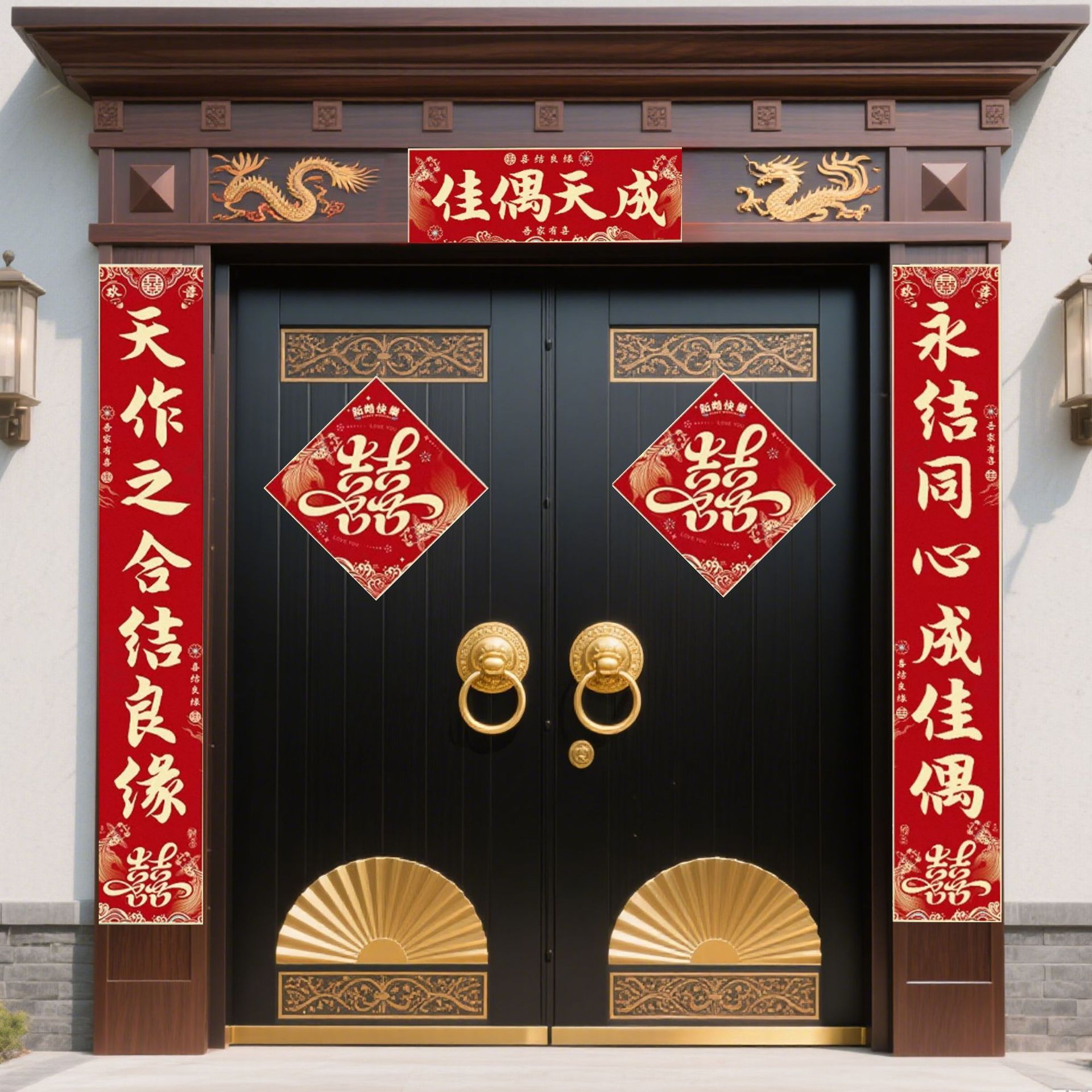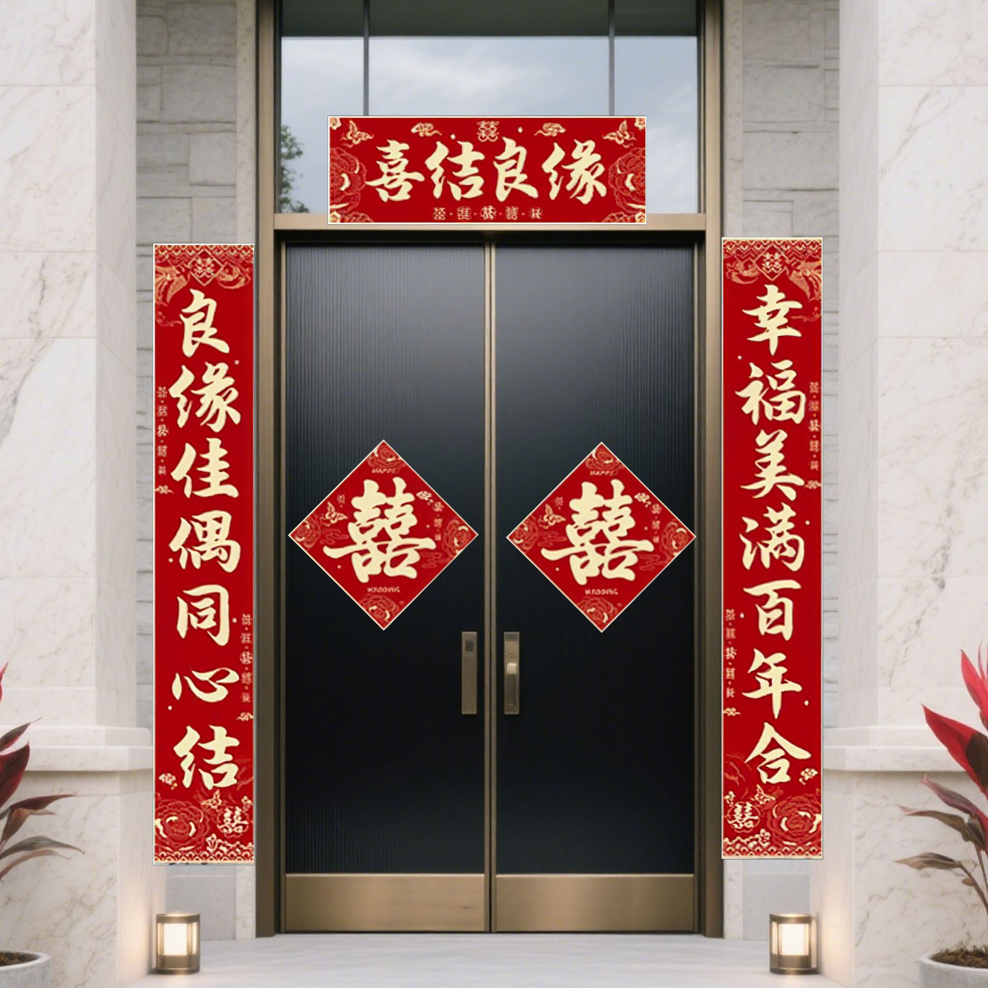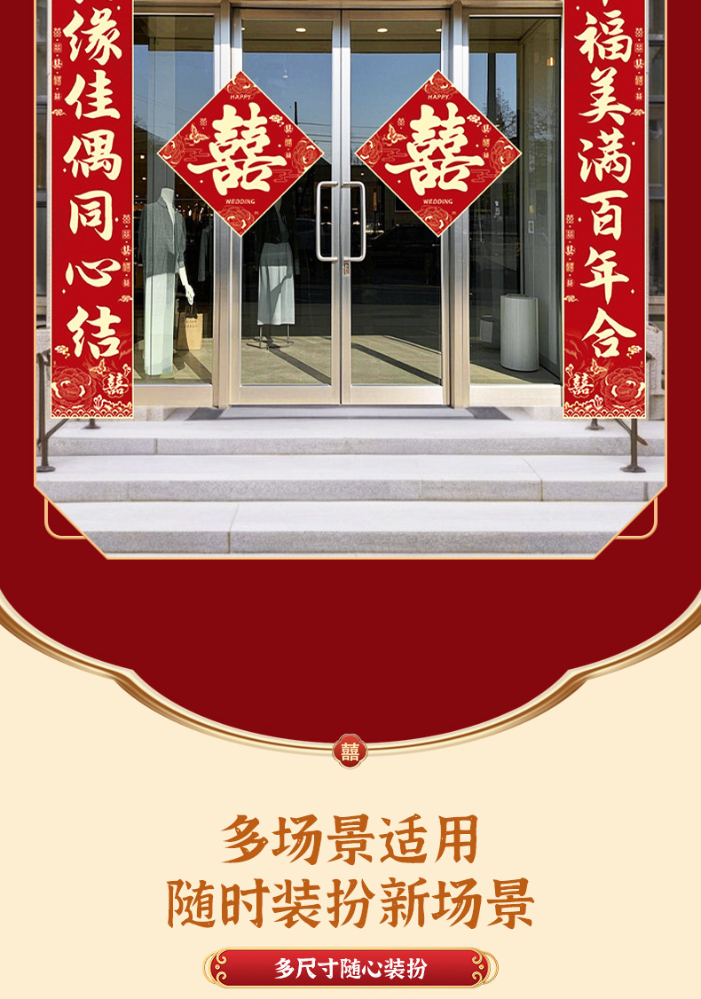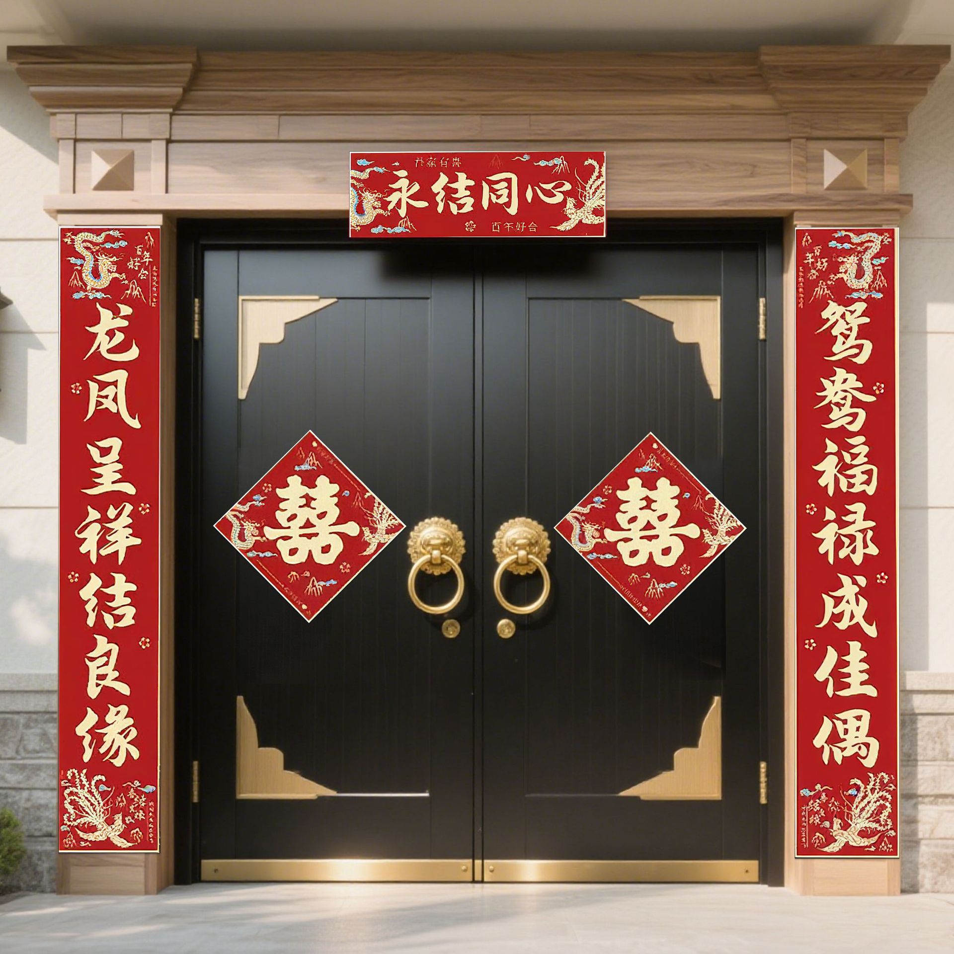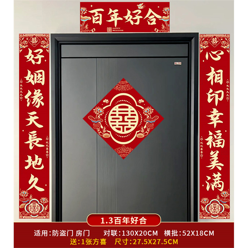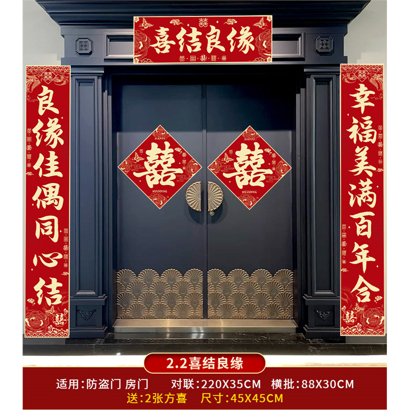 结婚女方新婚农村别墅自建房对联喜字贴男方婚礼大门专用喜联装饰