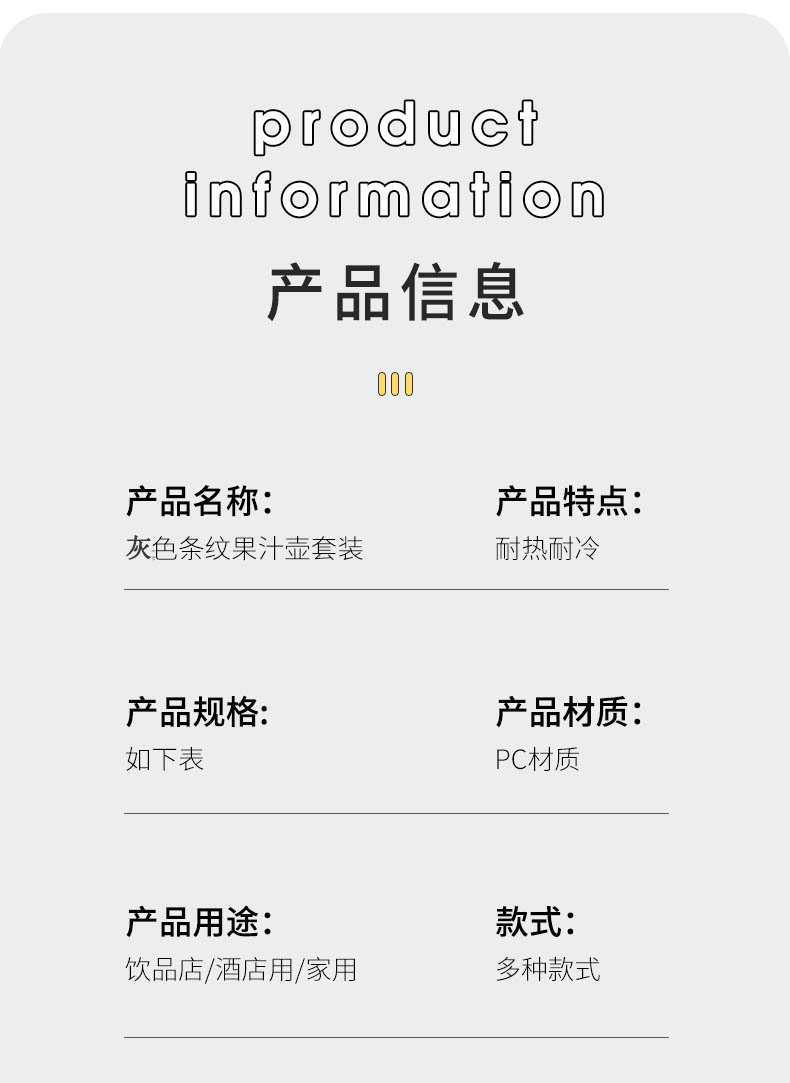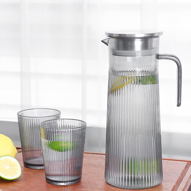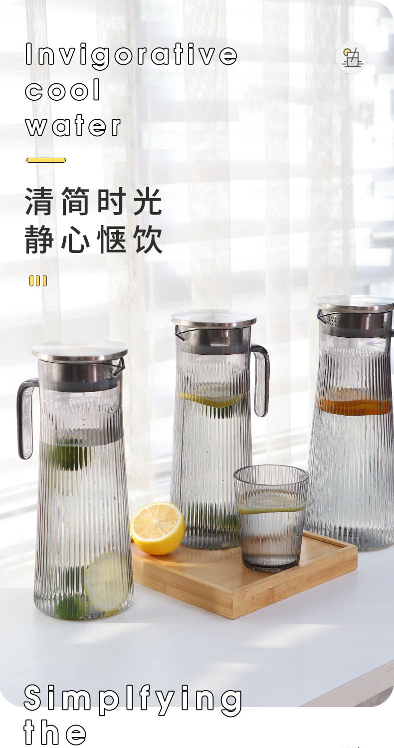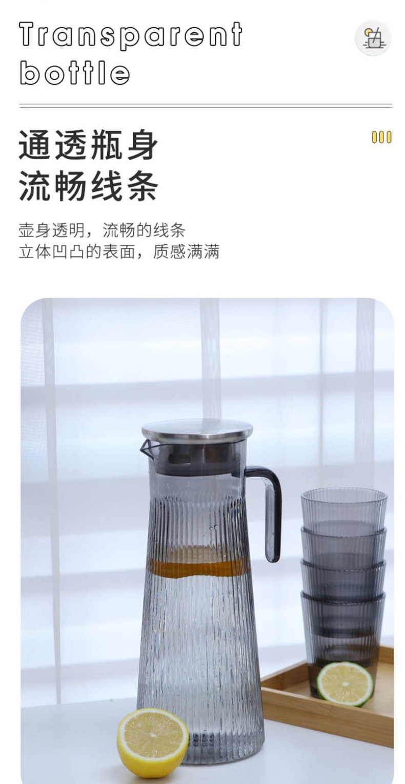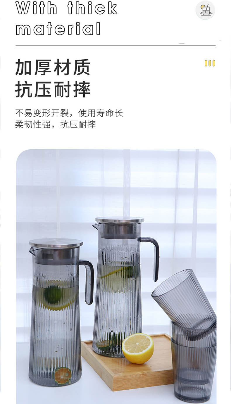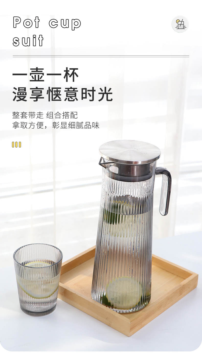 亚克力PC冷水壶套装餐饮酒店条纹壶耐摔耐高温凉水壶条纹扎壶套装