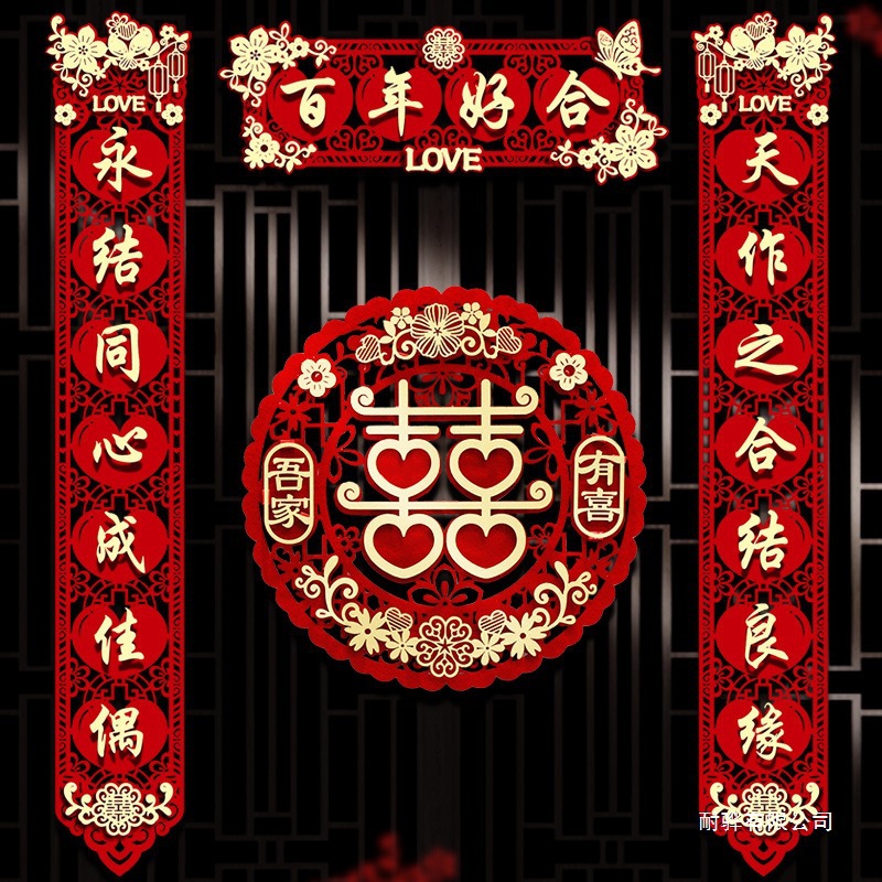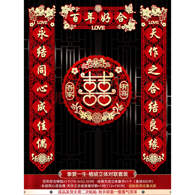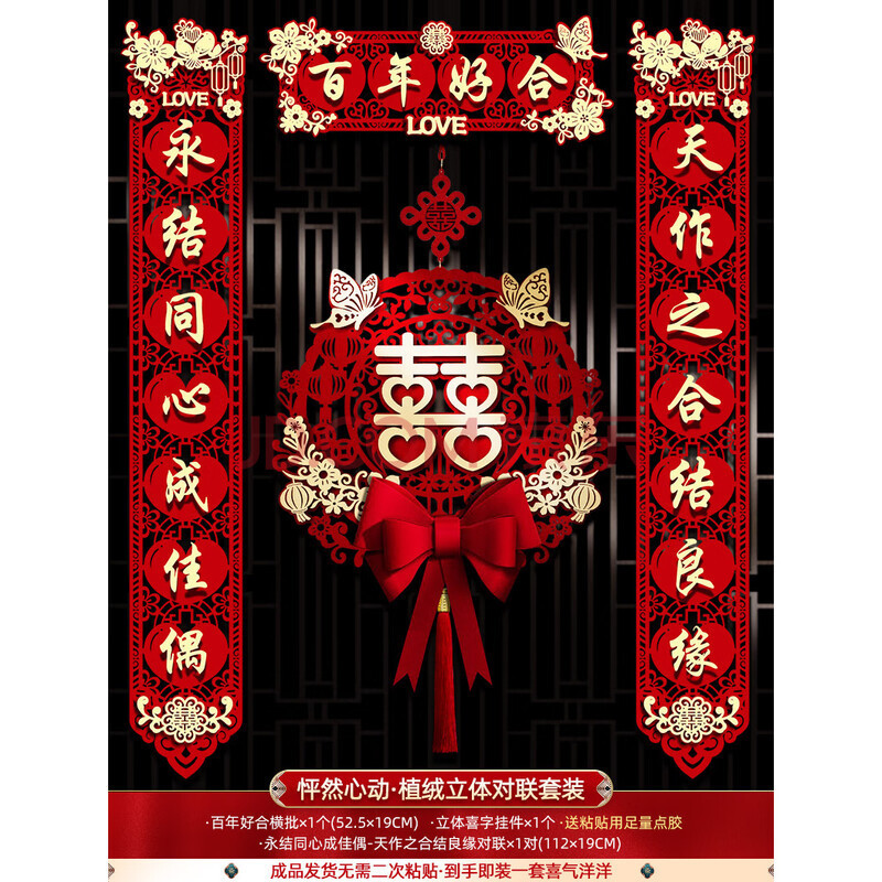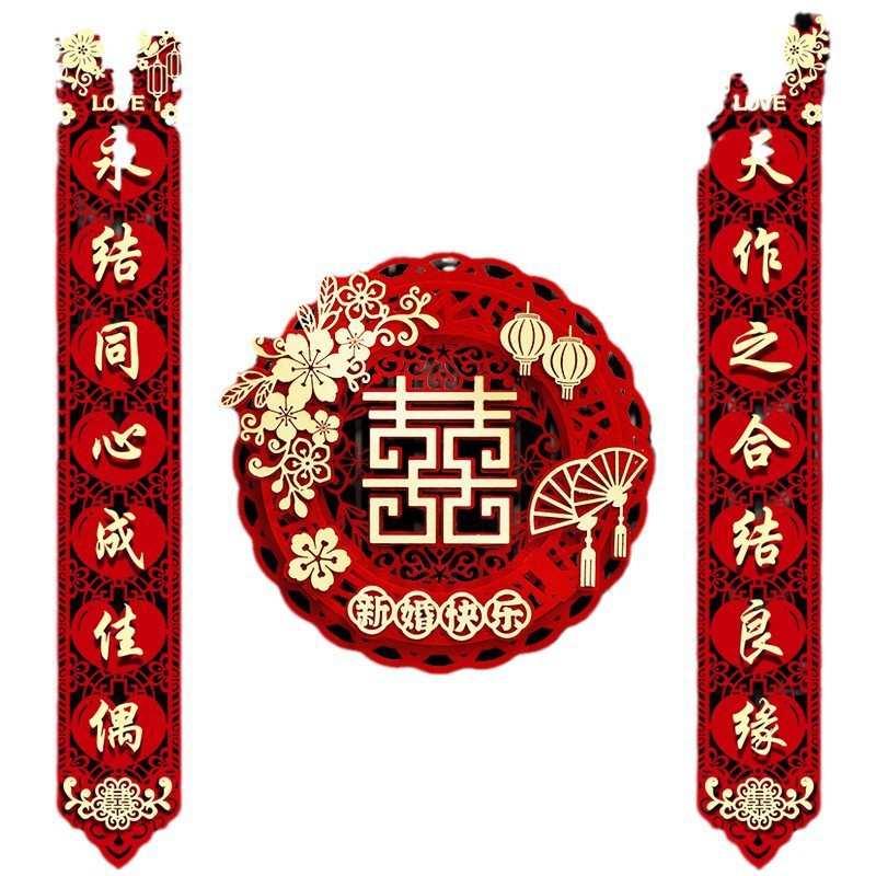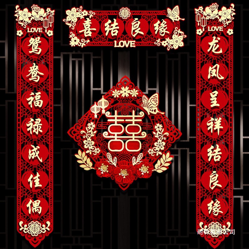 结婚对联男方大门女方出嫁喜联全套婚房门口房门磁吸婚礼用品大全