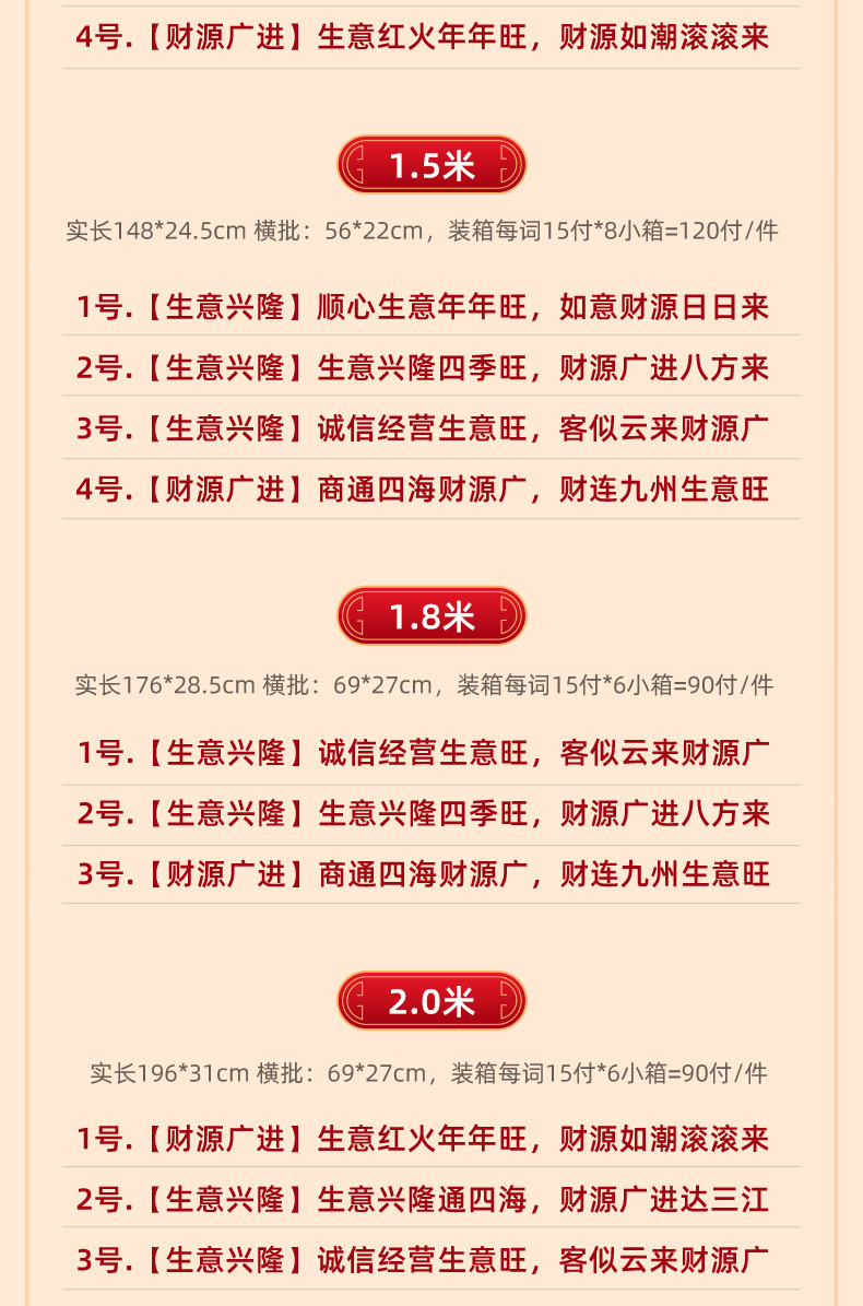 1.5 m business is booming, four seasons of prosperity, wealth, and wealth.(1.5米生意兴隆四季旺 财源广进八方来 生意兴隆) USD $3.29 136 box available