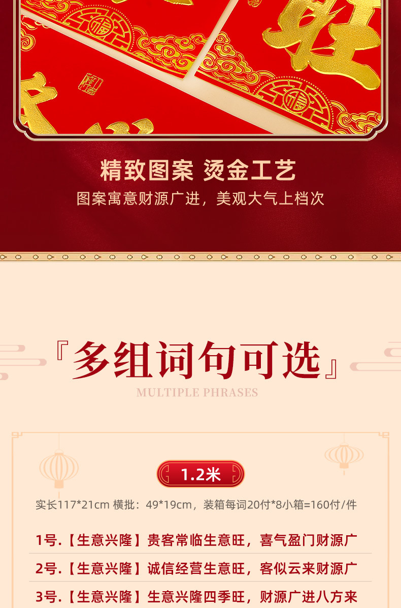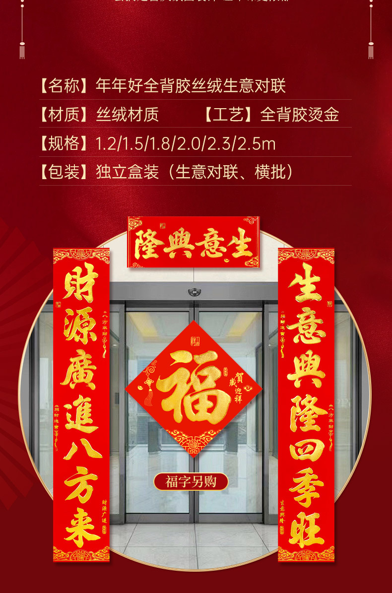 2.3 m business is booming, four seasons of prosperity, wealth and wealth, and business is booming(2.3米生意兴隆四季旺 财源广进八方来 生意兴隆) USD $6.22 29 box available