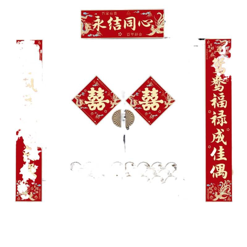 结婚对联男方农村大门喜联全套婚礼女方出嫁入户门喜字贴装饰