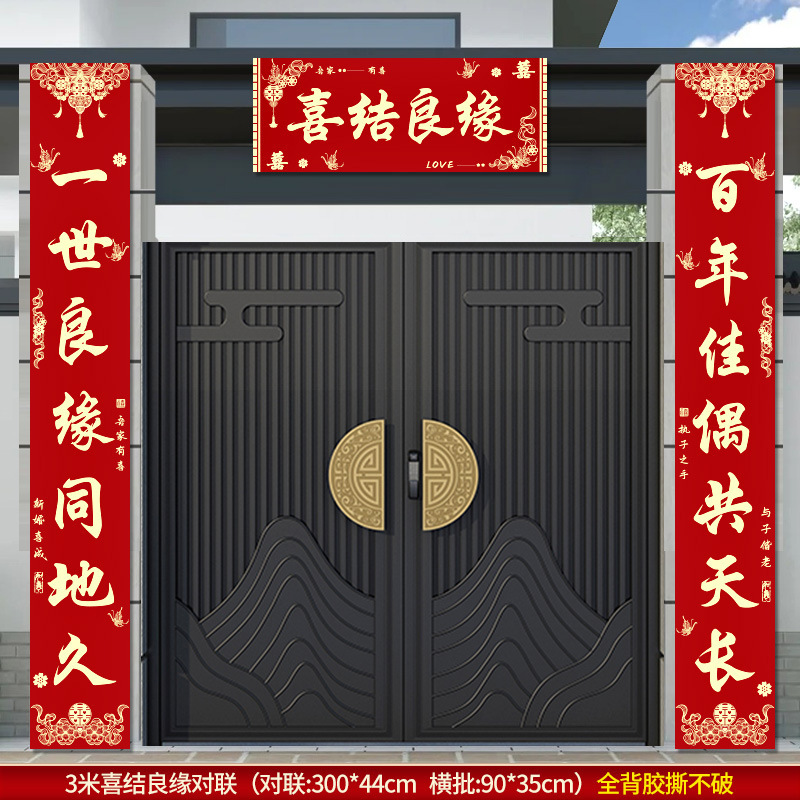 结婚对联男方农村大门米喜联全套婚礼女方出嫁入户门喜字贴装饰