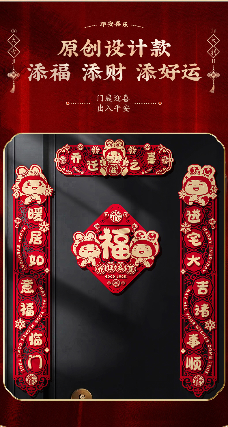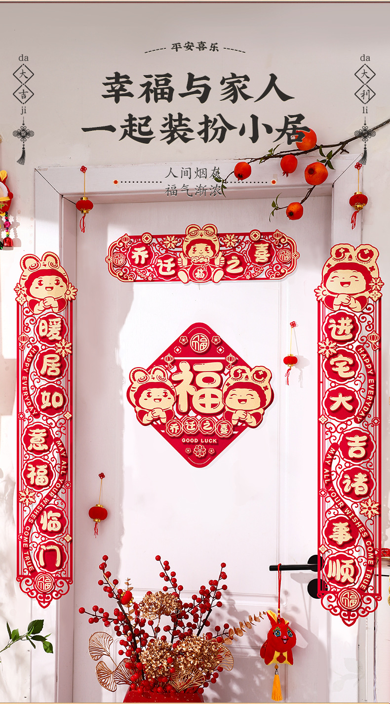 乔迁对联新居布置新房仪式搬家入宅入户门贴乔迁之喜装饰用品大全