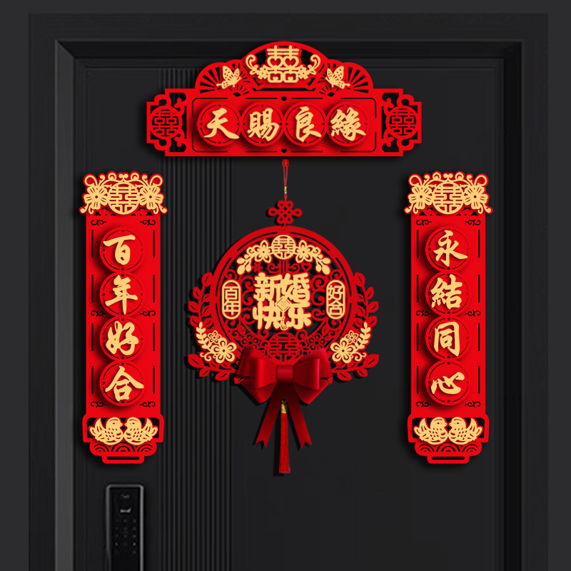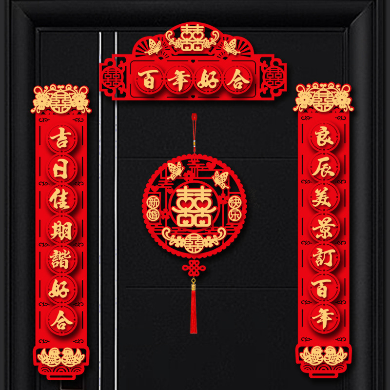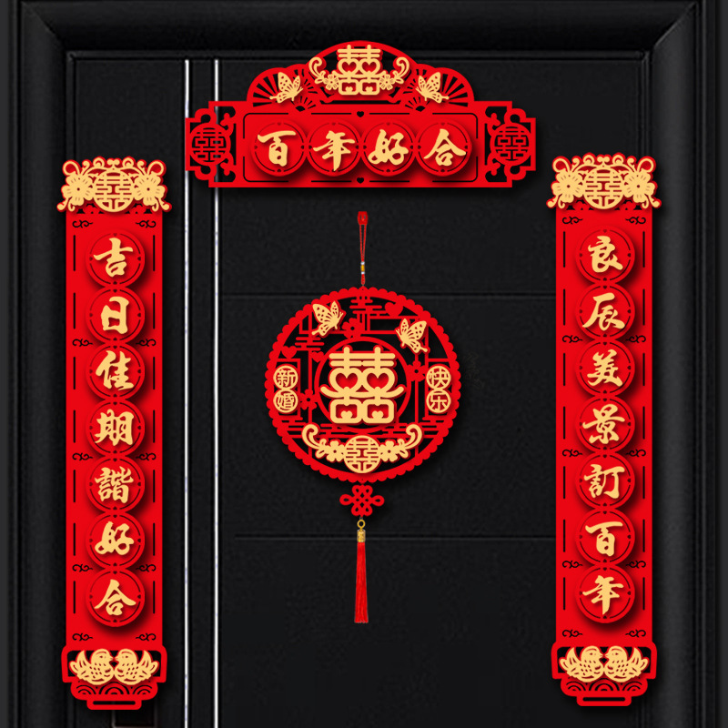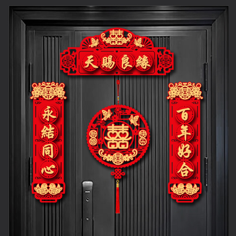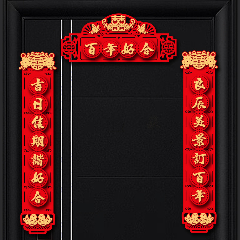 磁吸结婚对联男方大门装饰女方出嫁新婚喜联婚庆用品大全双喜挂件
