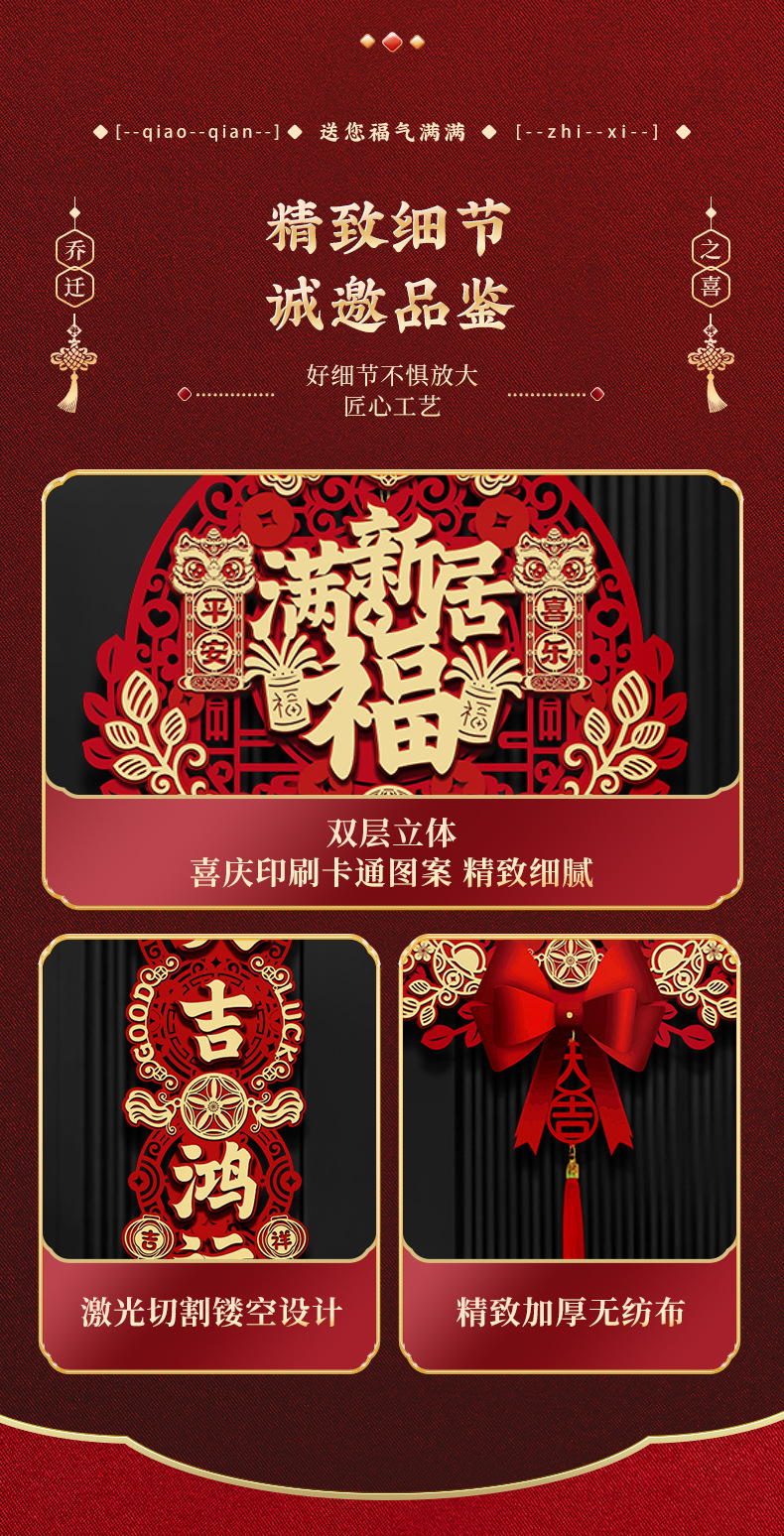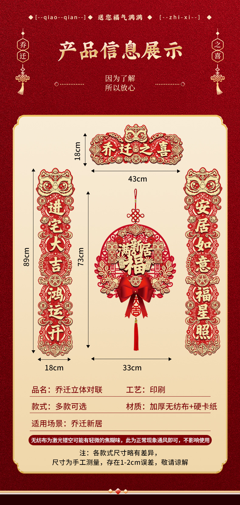 | housewarming couplet magnetic suction, stickers pairs (finished product delivery)(乔迁对联磁吸、胶贴双用款(成品发货)) | USD $2.14 | 100 set available |