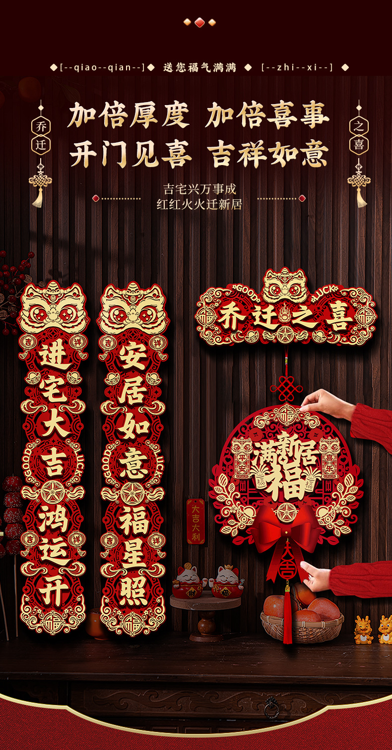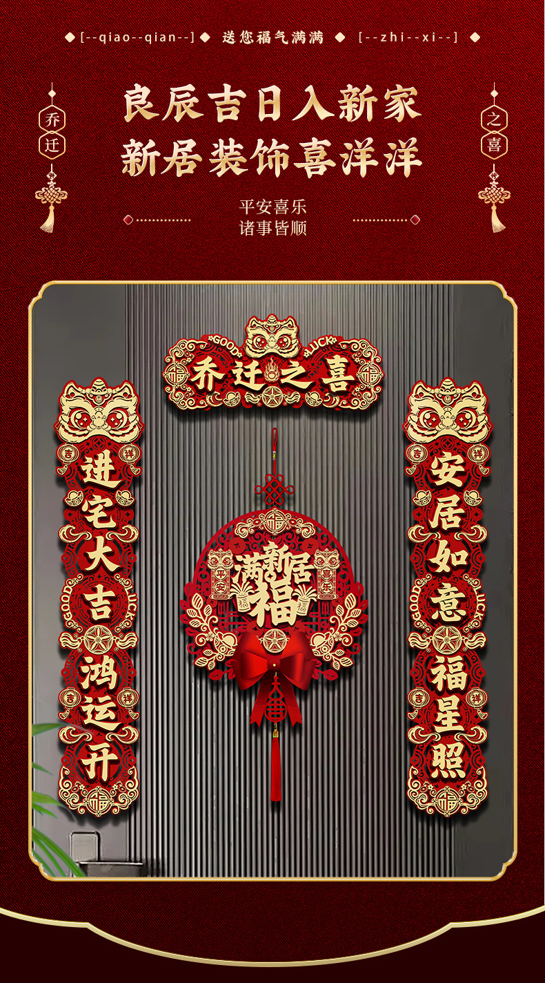 | housewarming couplet magnetic suction, stickers pairs (finished product delivery)(乔迁对联磁吸、胶贴双用款(成品发货)) | USD $2.96 | 100 set available |