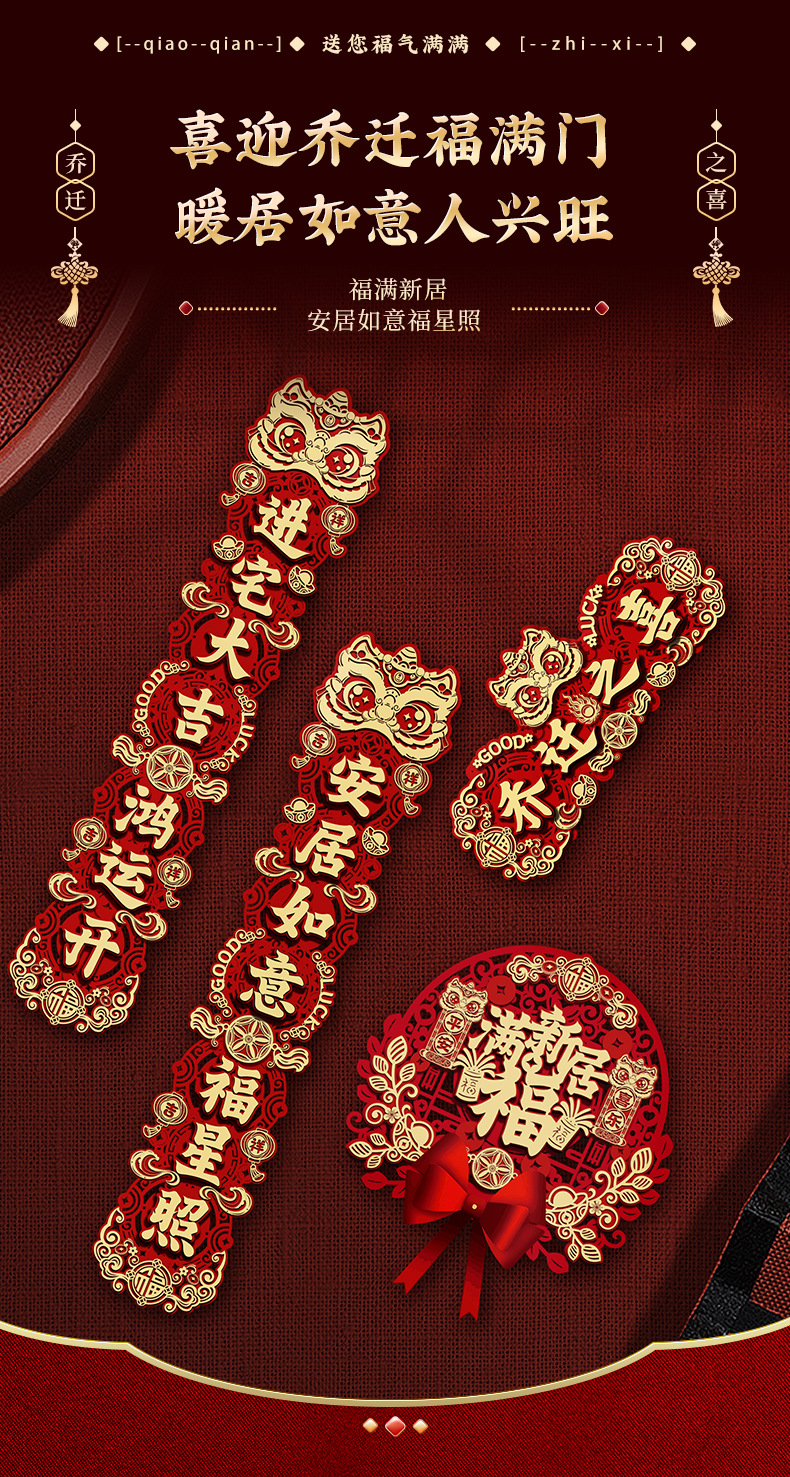 | housewarming couplet magnetic suction, stickers pairs (finished product delivery)(乔迁对联磁吸、胶贴双用款(成品发货)) | USD $2.75 | 90 set available |