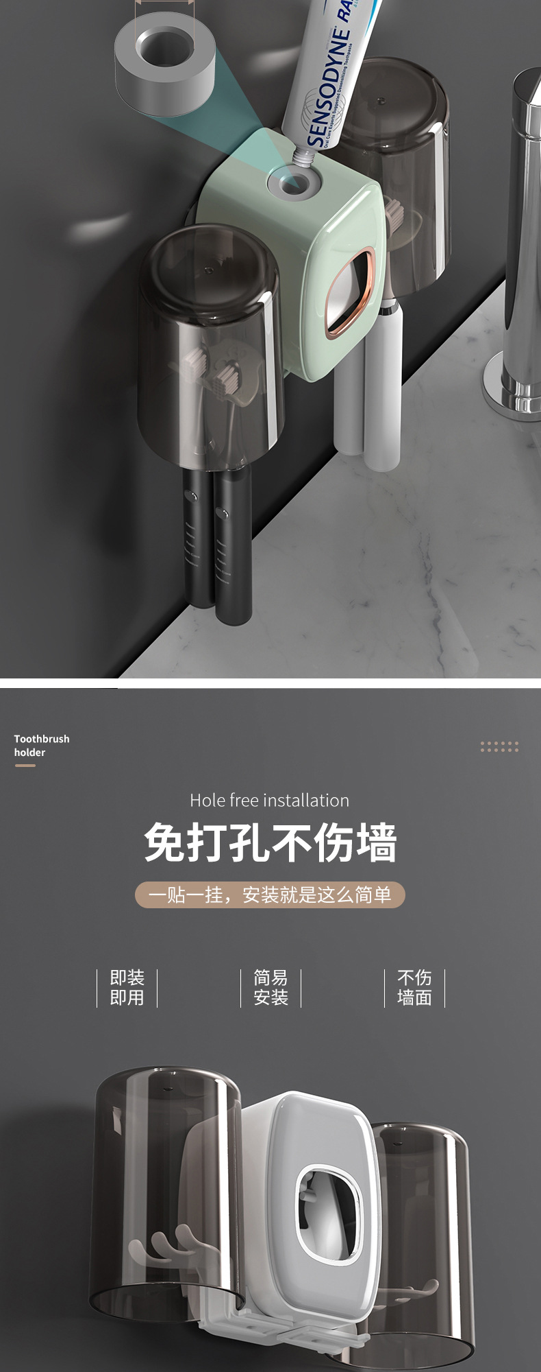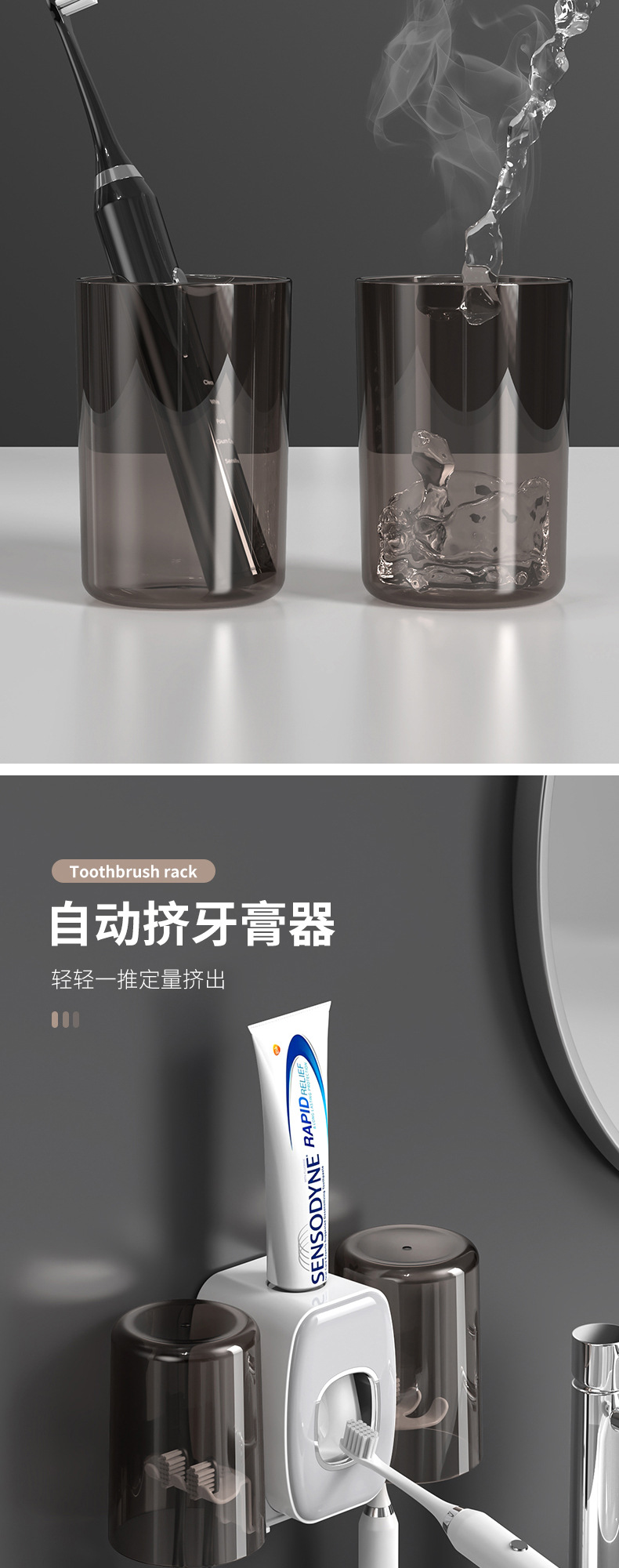 简约壁挂懒人自动省力一键挤牙膏器两杯带杯子挤牙膏器牙刷架套装