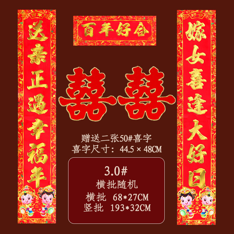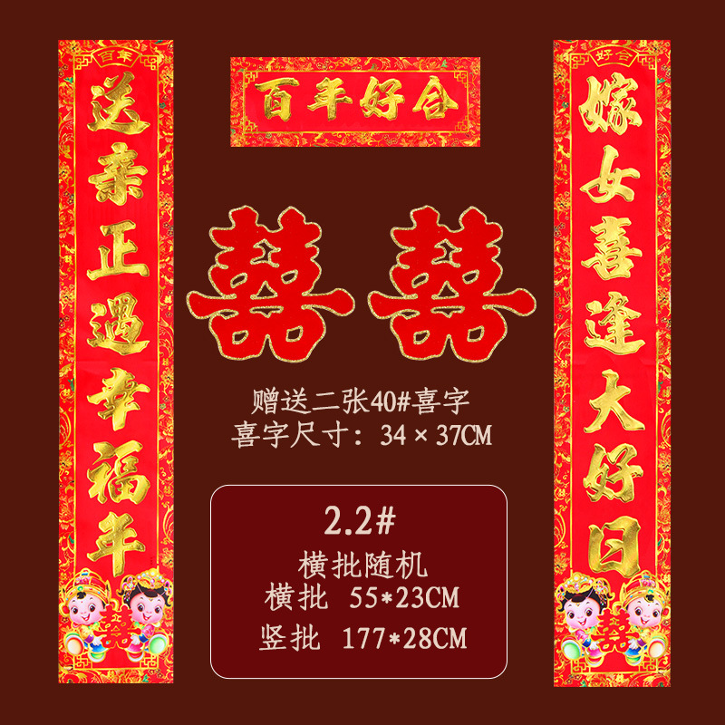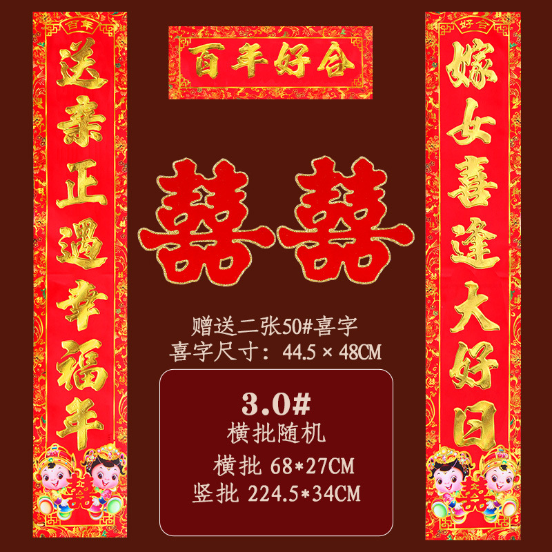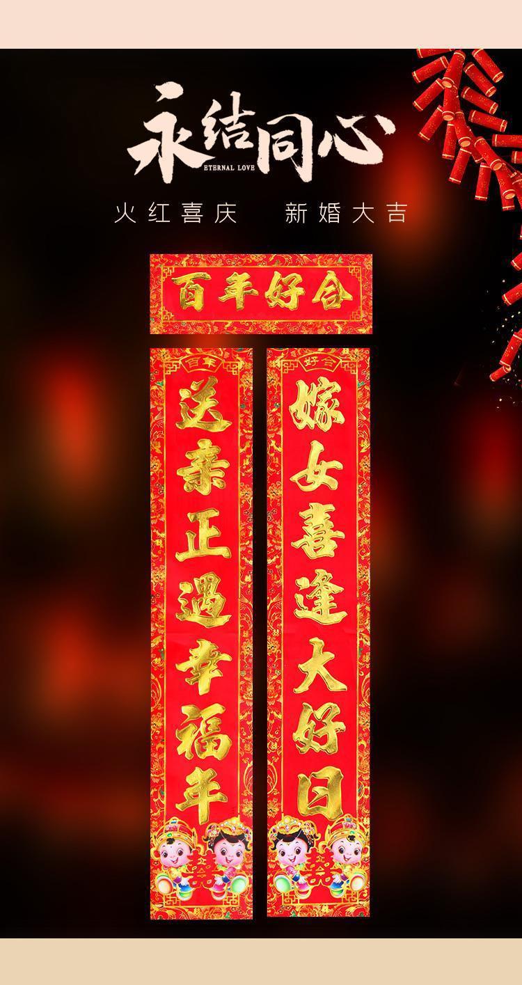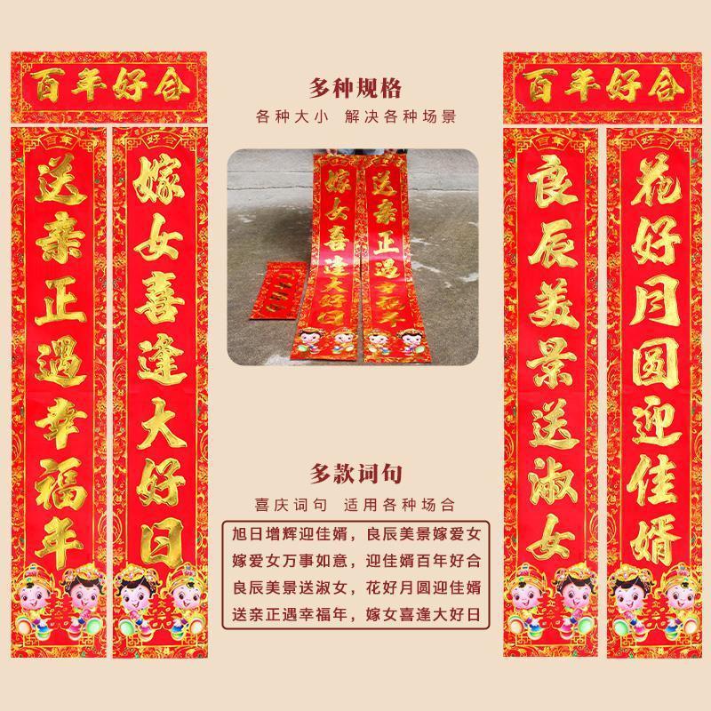 | wedding couplet (send xi character + dispensing)(嫁女对联(送喜字+点胶)) | USD $2.11 | 49998 piece available |