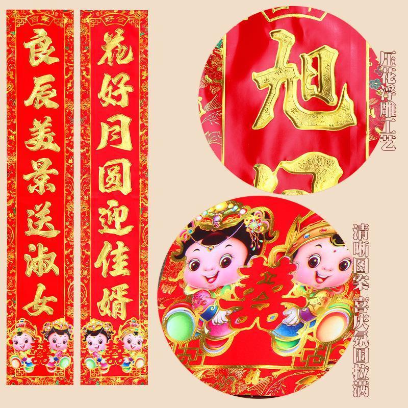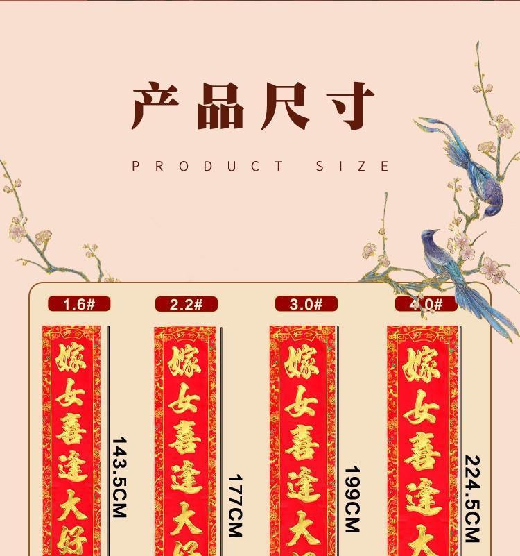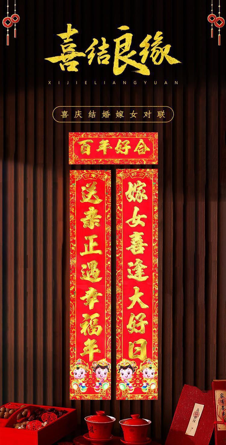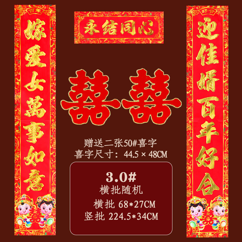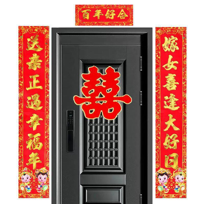 | wedding couplet (send xi character + dispensing)(嫁女对联(送喜字+点胶)) | USD $2.11 | 49998 piece available |