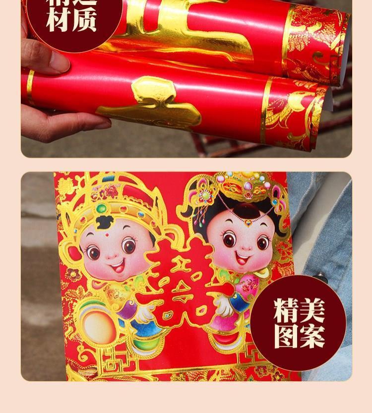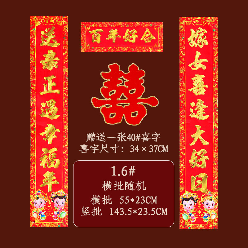 | wedding couplet (send xi character + dispensing)(嫁女对联(送喜字+点胶)) | USD $1.69 | 49996 piece available |