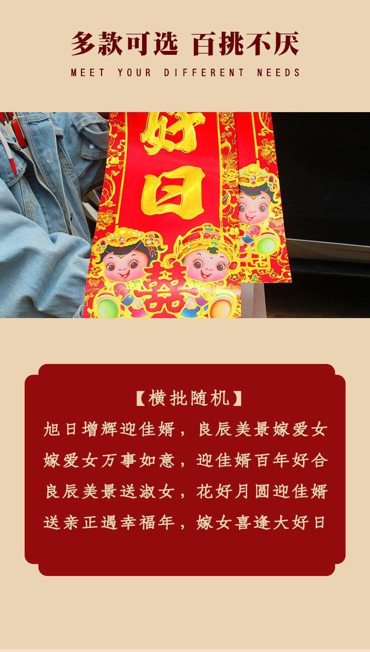 | wedding couplet (send xi character + dispensing)(嫁女对联(送喜字+点胶)) | USD $1.9 | 49999 piece available |