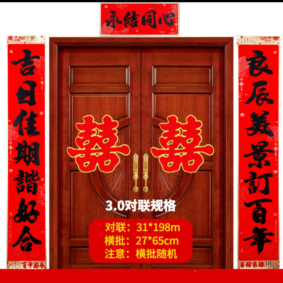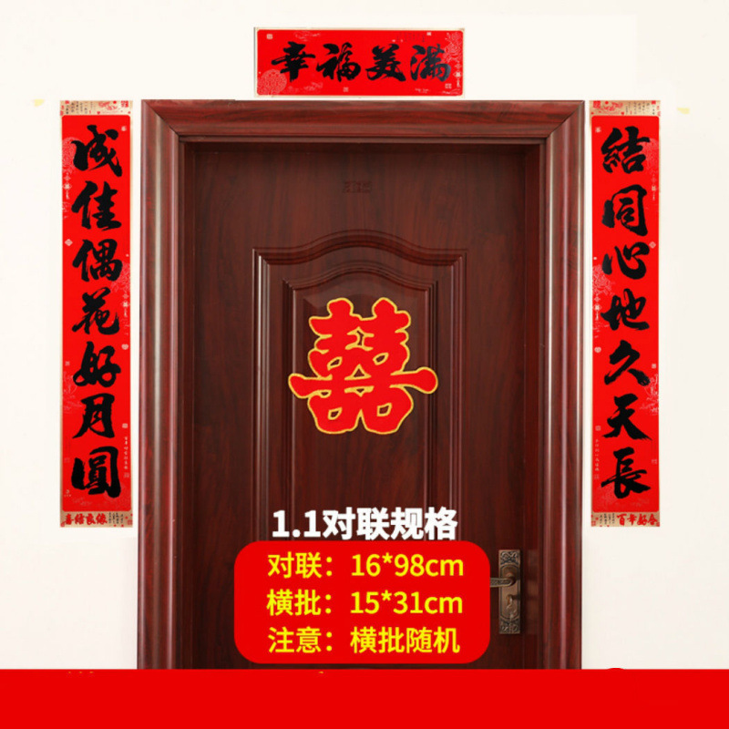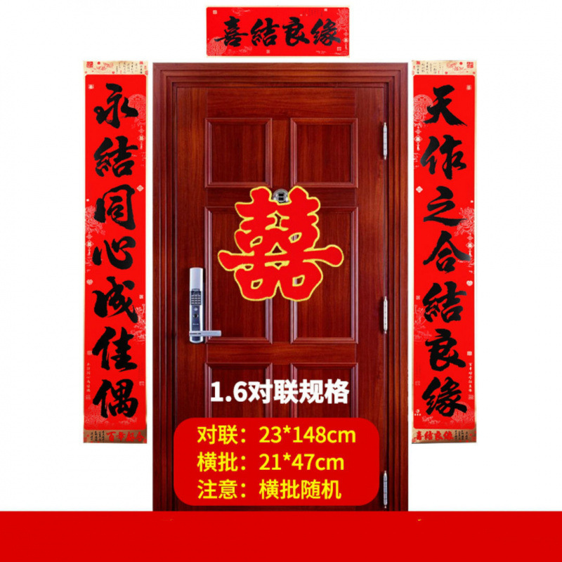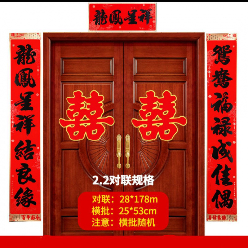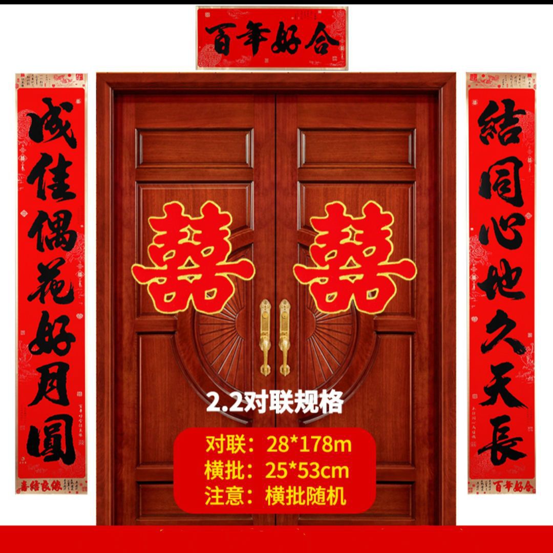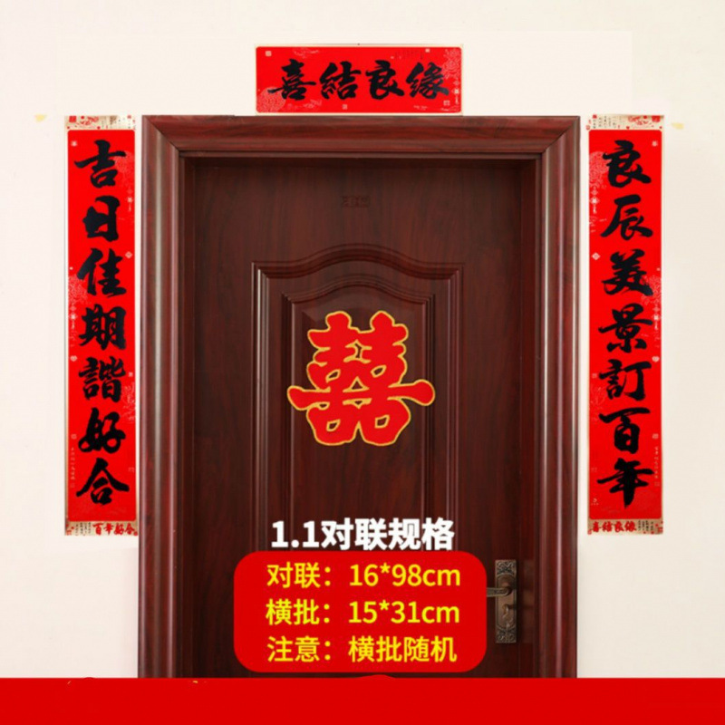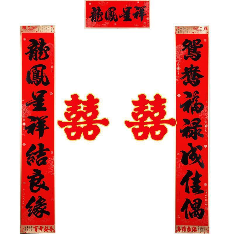 | calligraphy black word marriage couplets +2 xi words + dispensing(书法黑字婚联+2个喜字+点胶) | USD $4.36 | 2999 piece available |