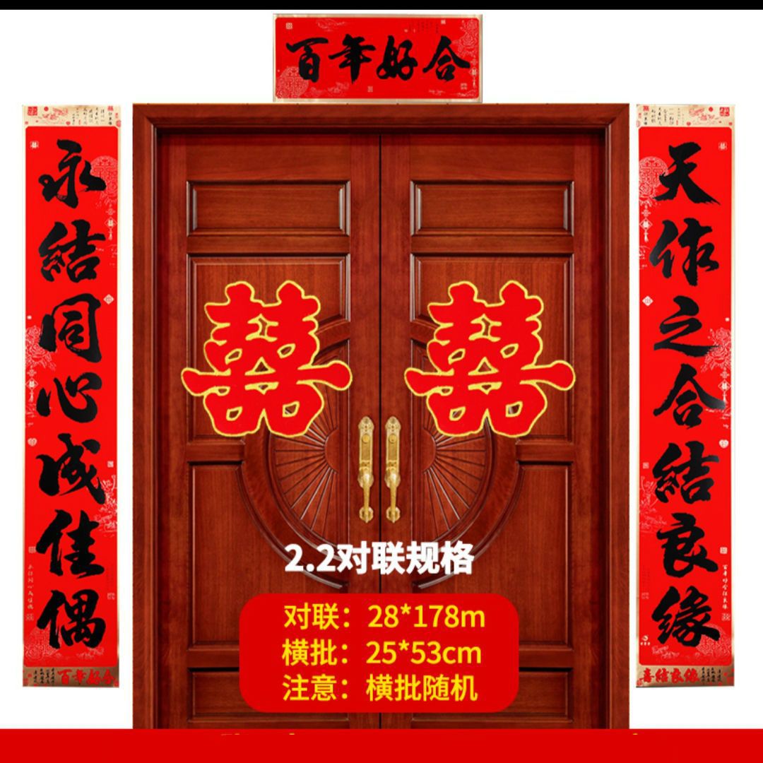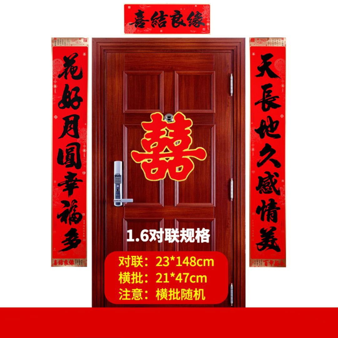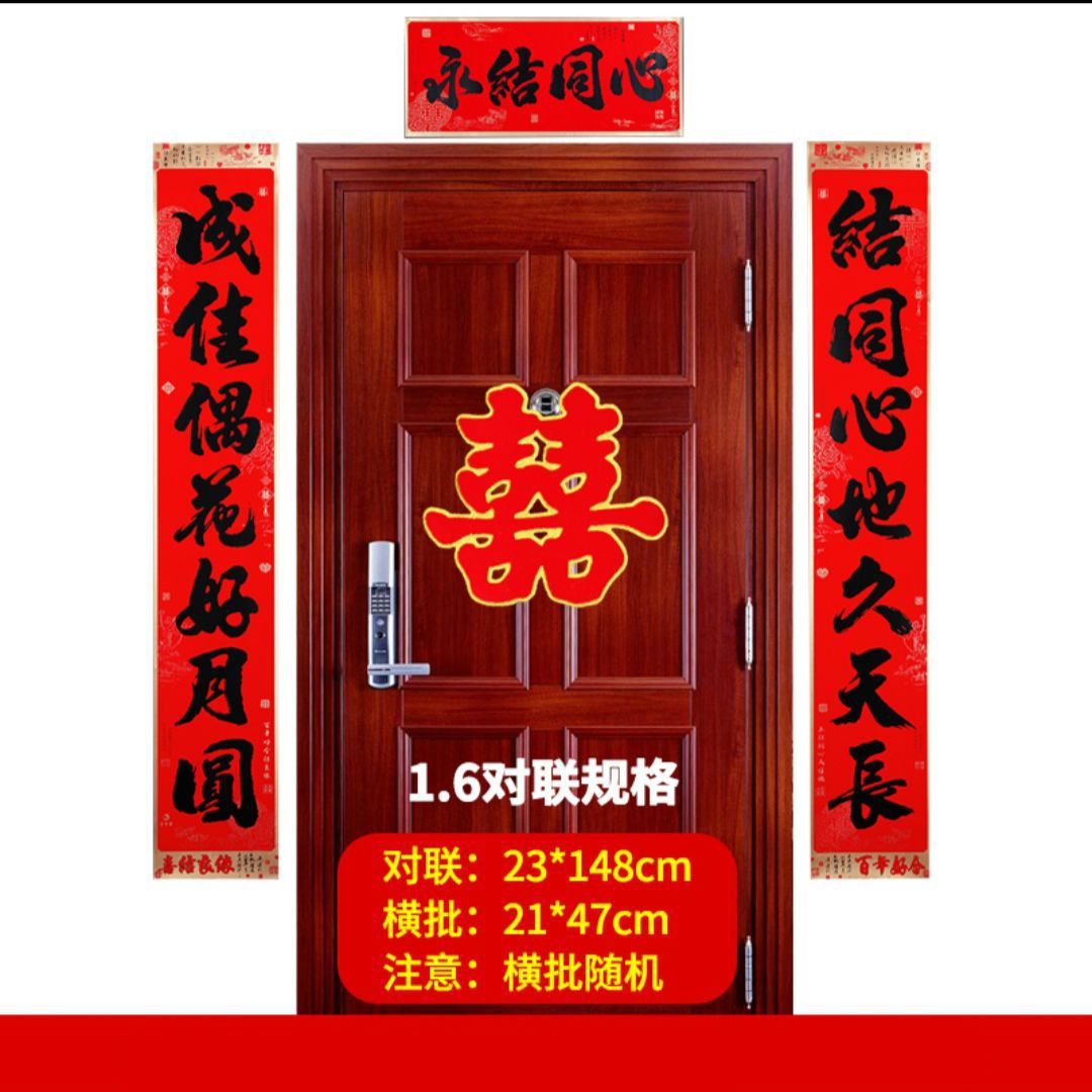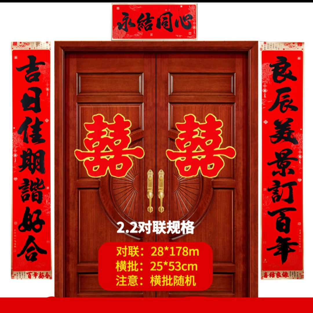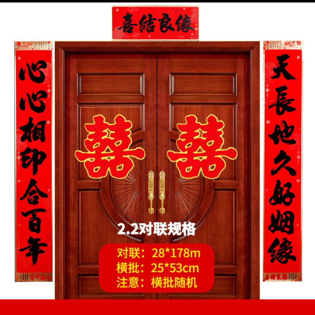 结婚对联喜联黑字婚联新婚大门对联男方女方出嫁婚庆对联布置兰之