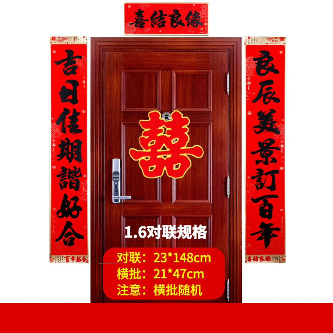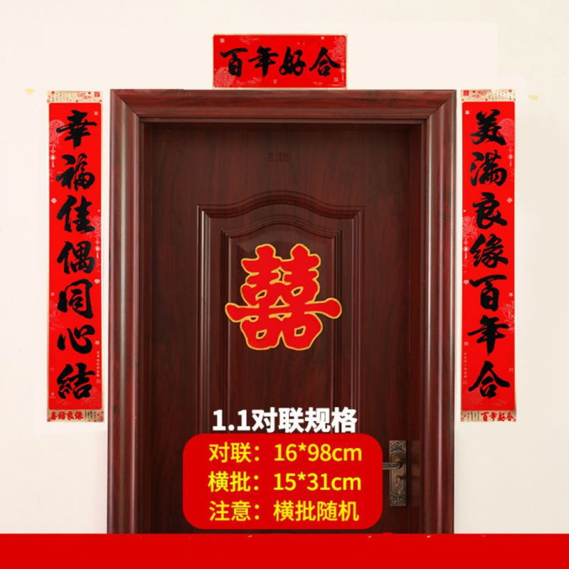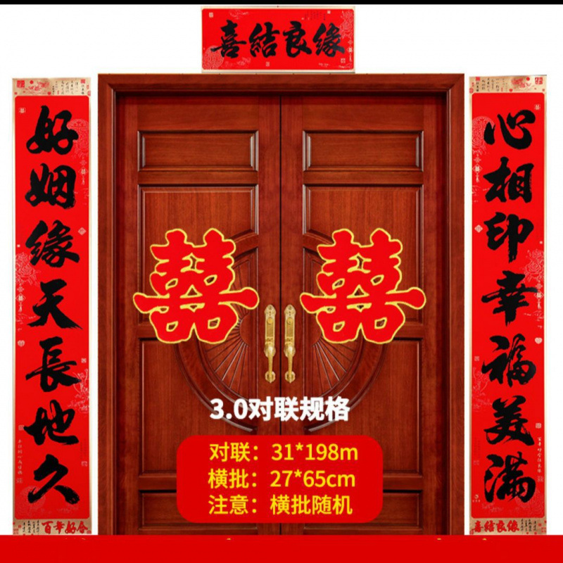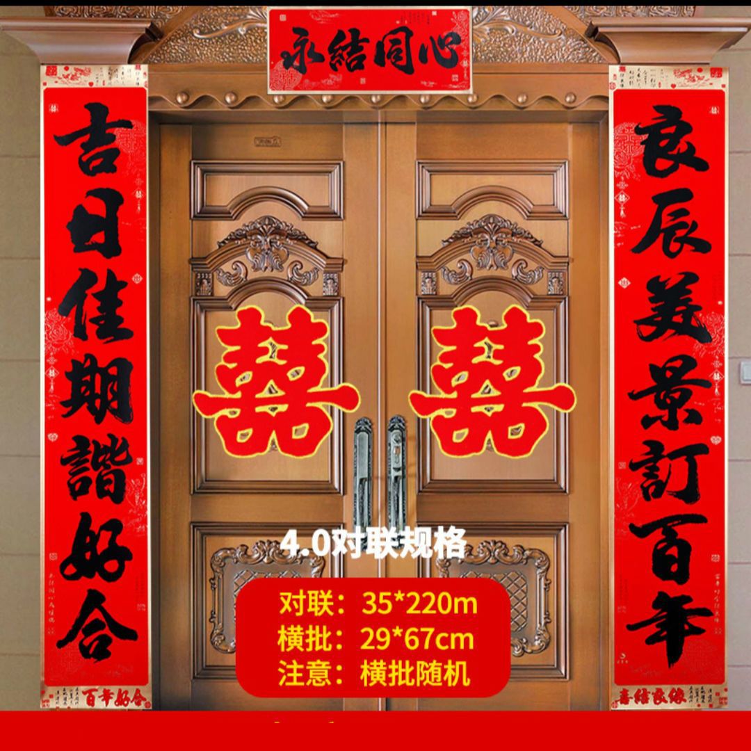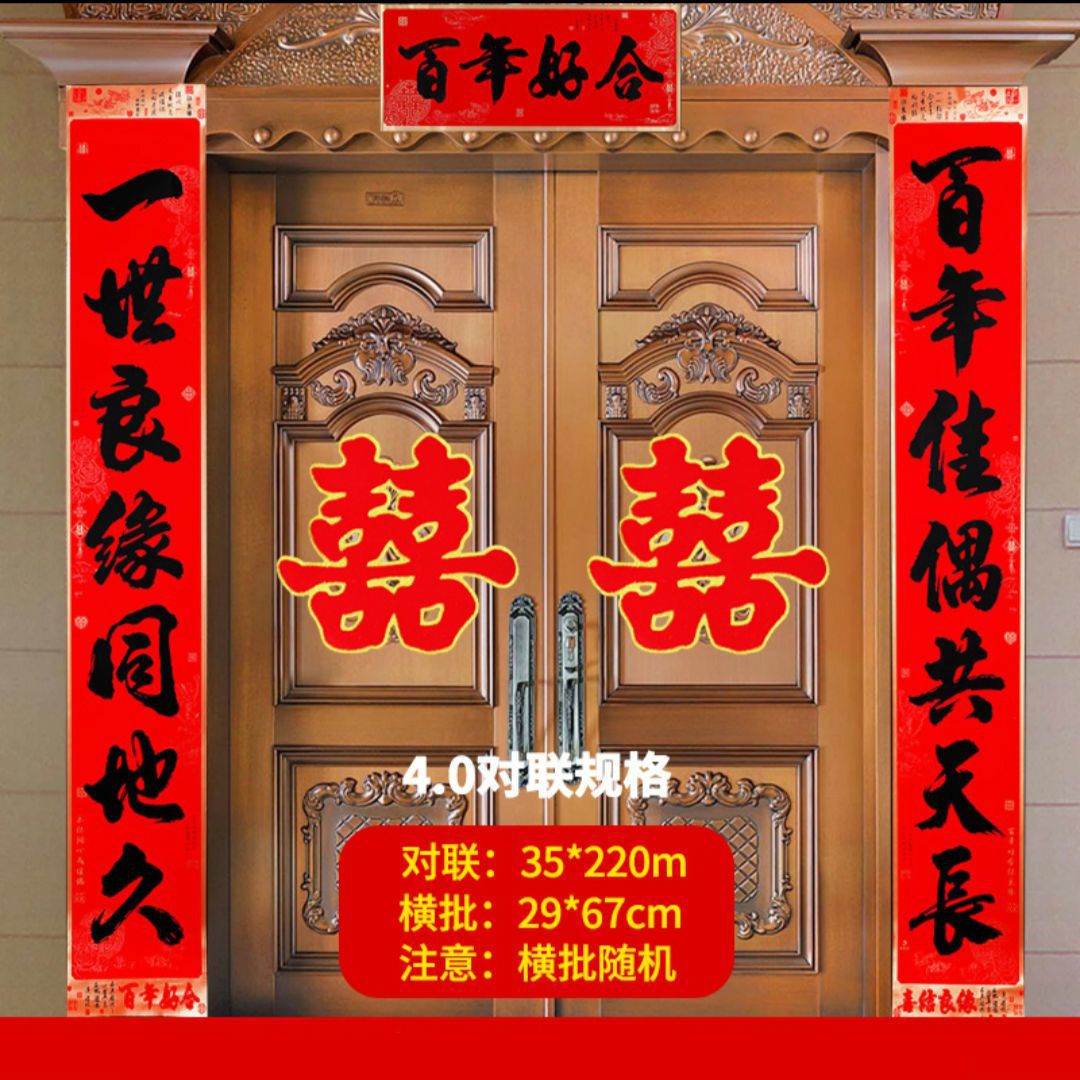 结婚对联喜联黑字婚联新婚大门对联男方女方出嫁婚庆对联布置兰之