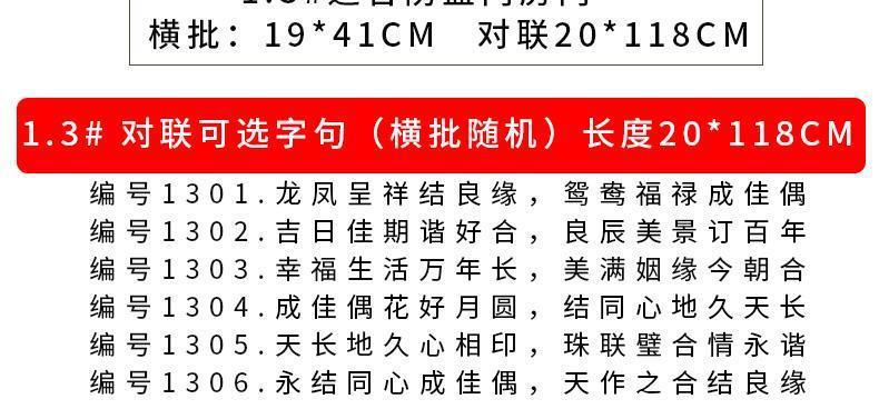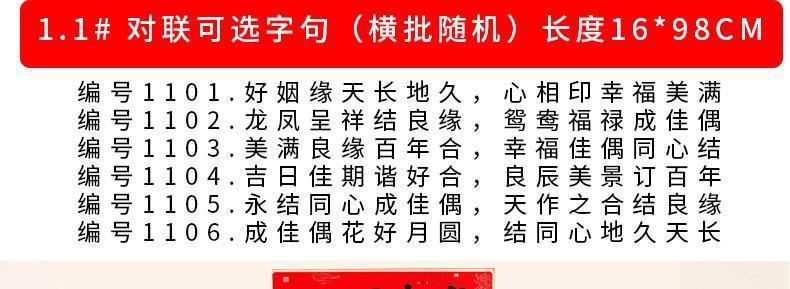 | calligraphy black word marriage couplets +2 xi words + dispensing(书法黑字婚联+2个喜字+点胶) | USD $3.28 | 2999 piece available |