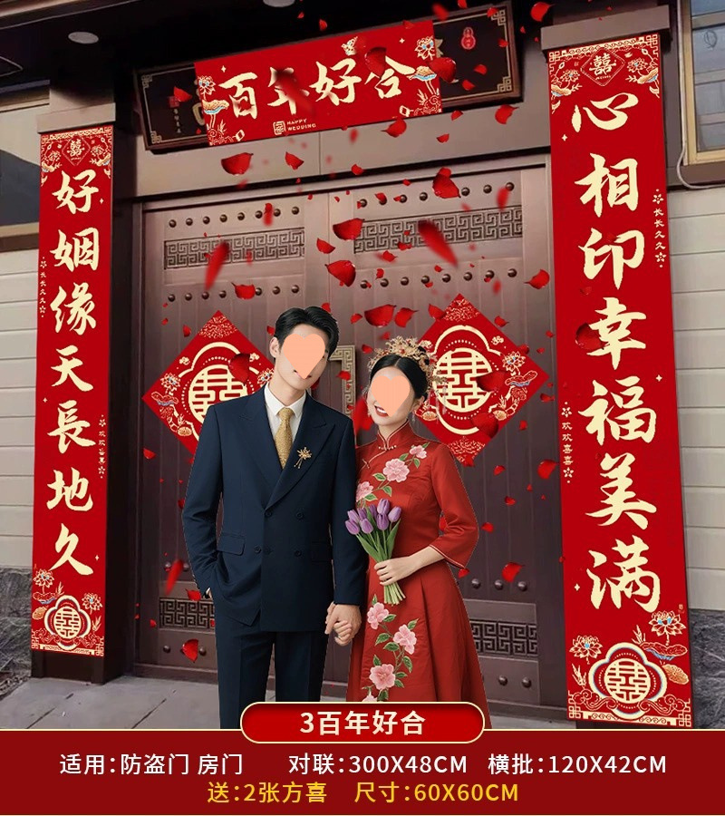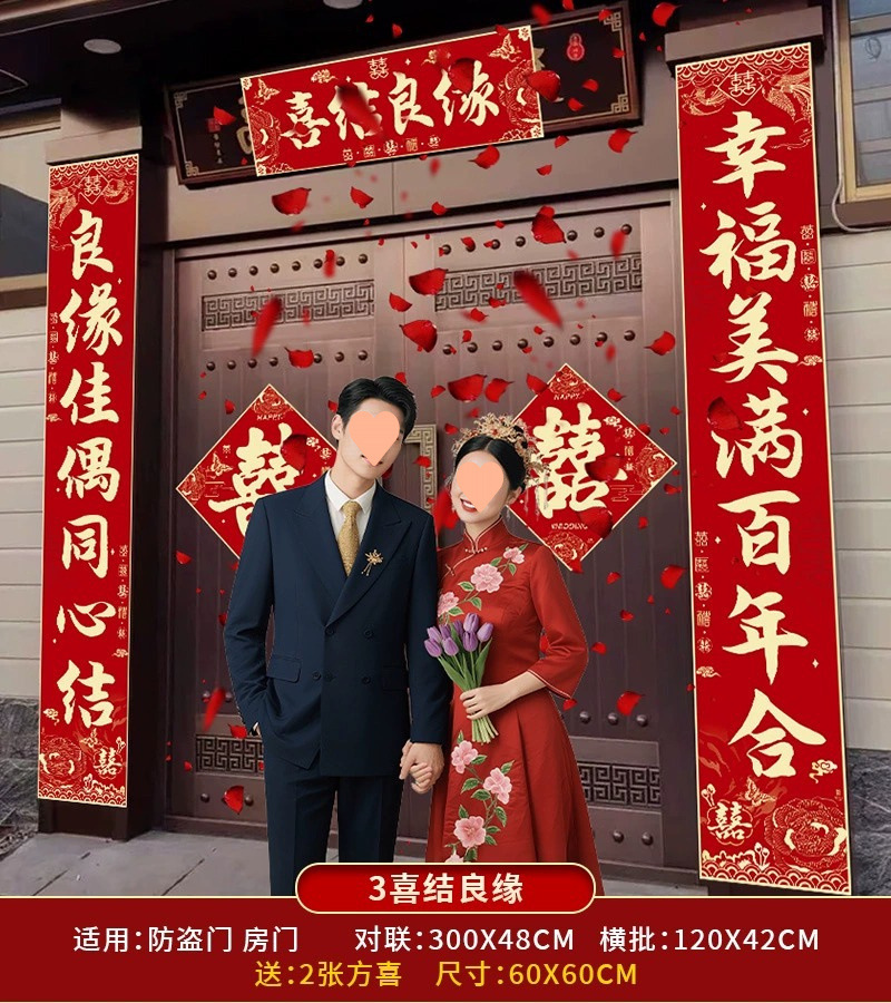 结婚对联男方农村大门喜联全套婚礼女方出嫁入户门喜字贴装饰