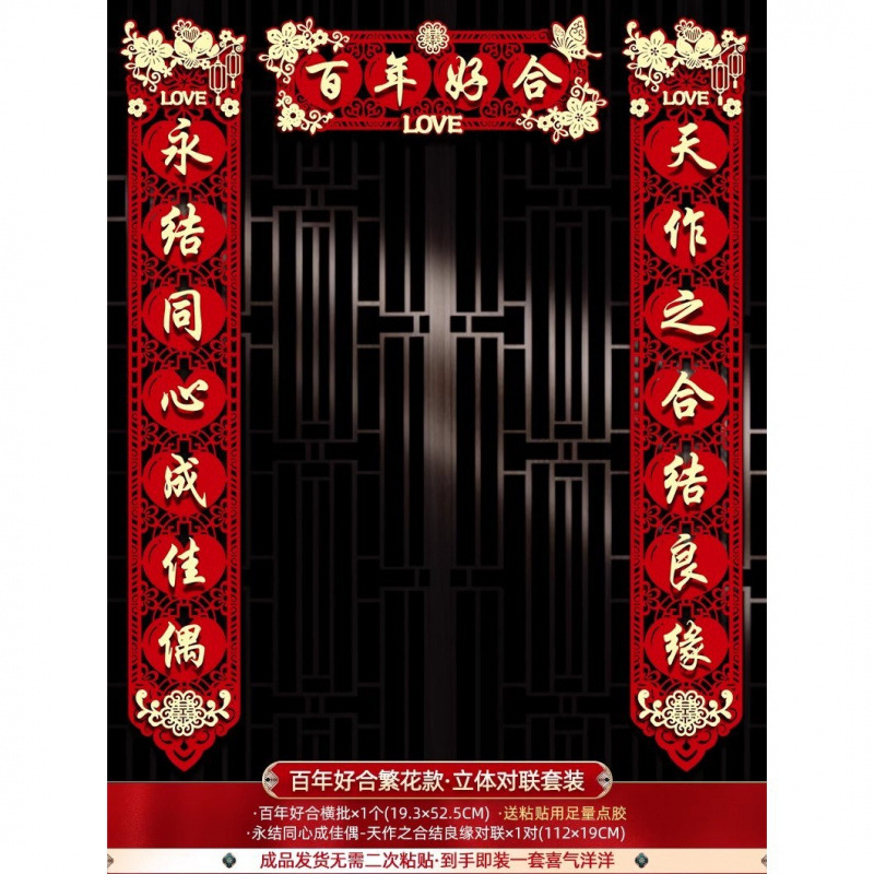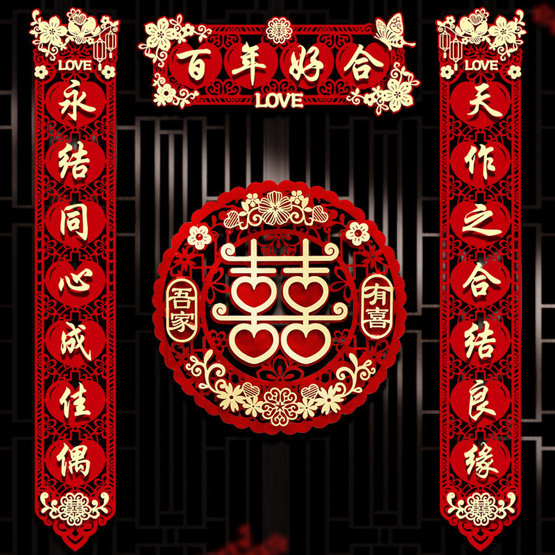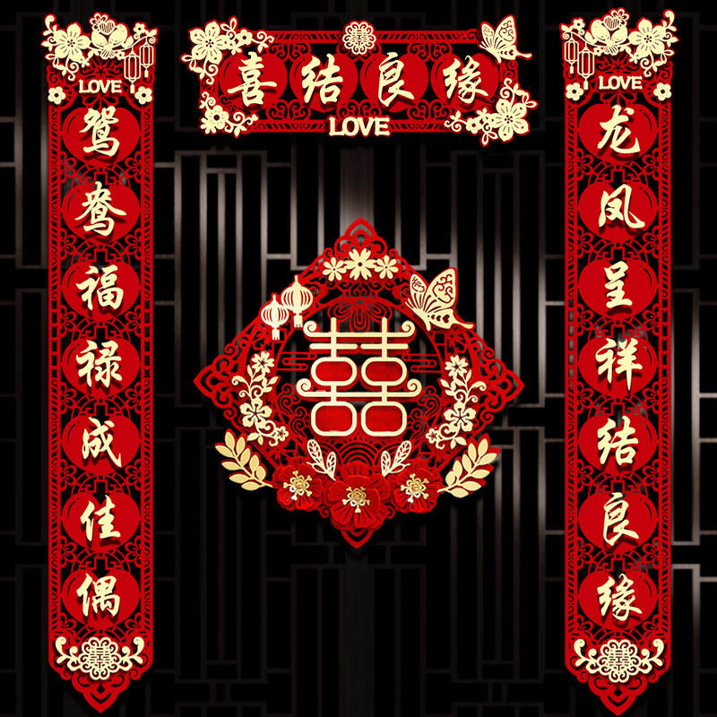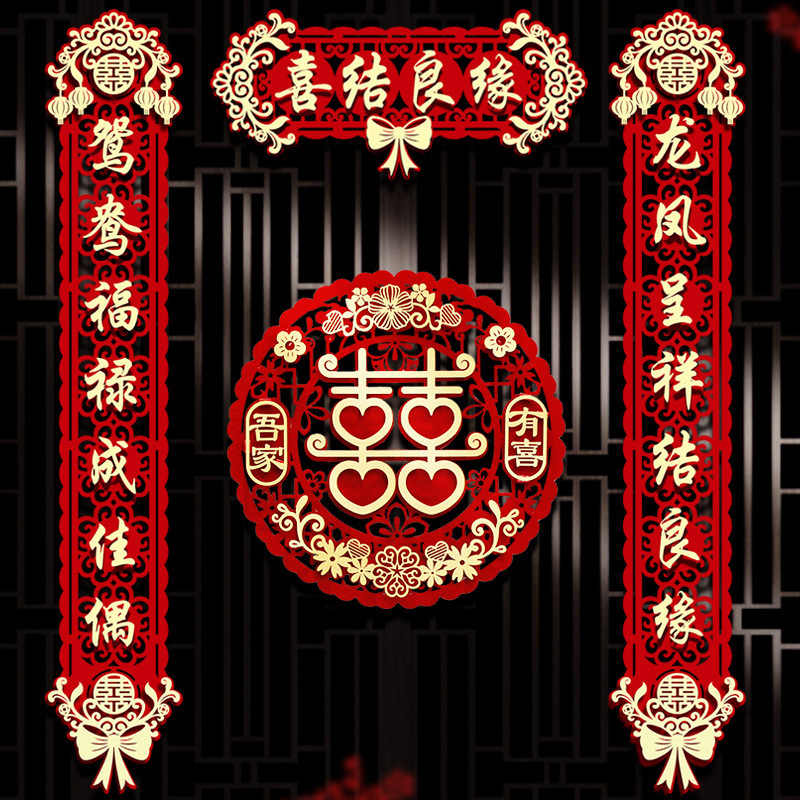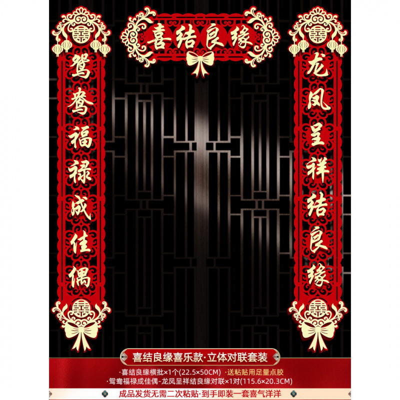 结婚对联男方大门女方出嫁喜联全套婚房门口房门磁吸婚礼用品大全