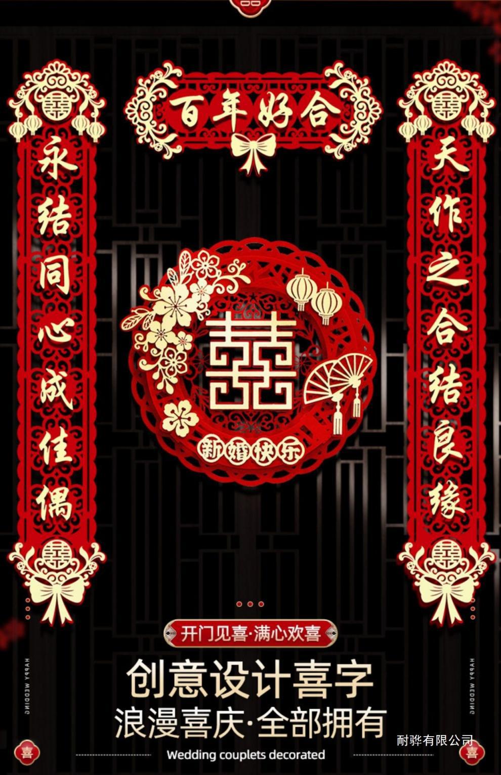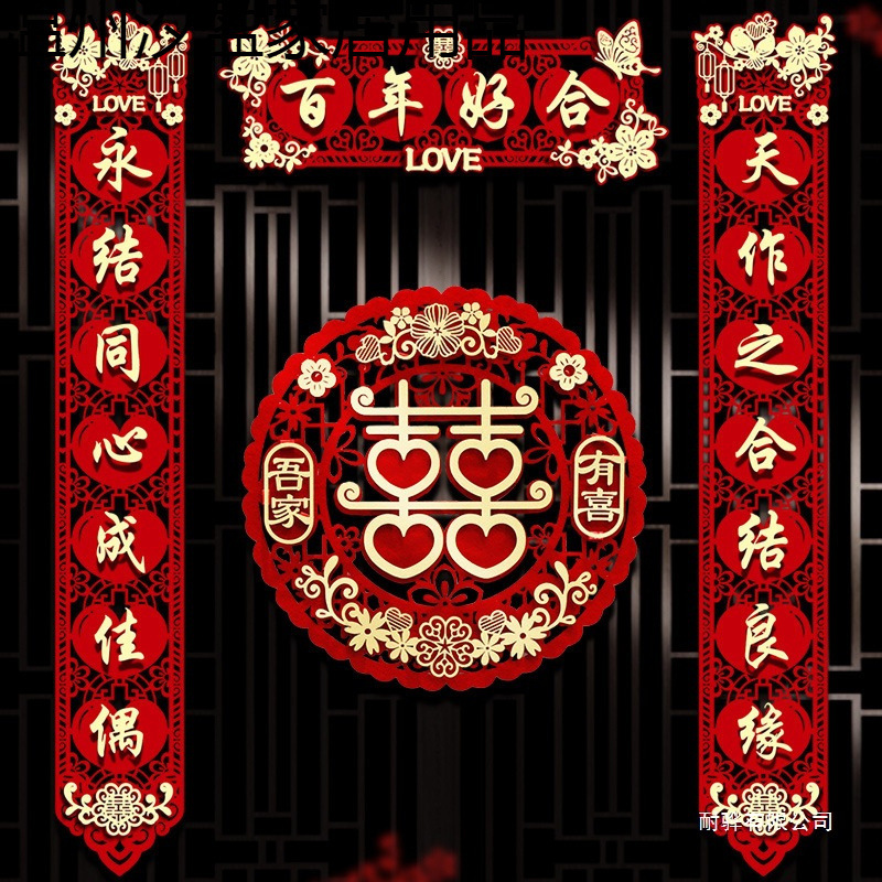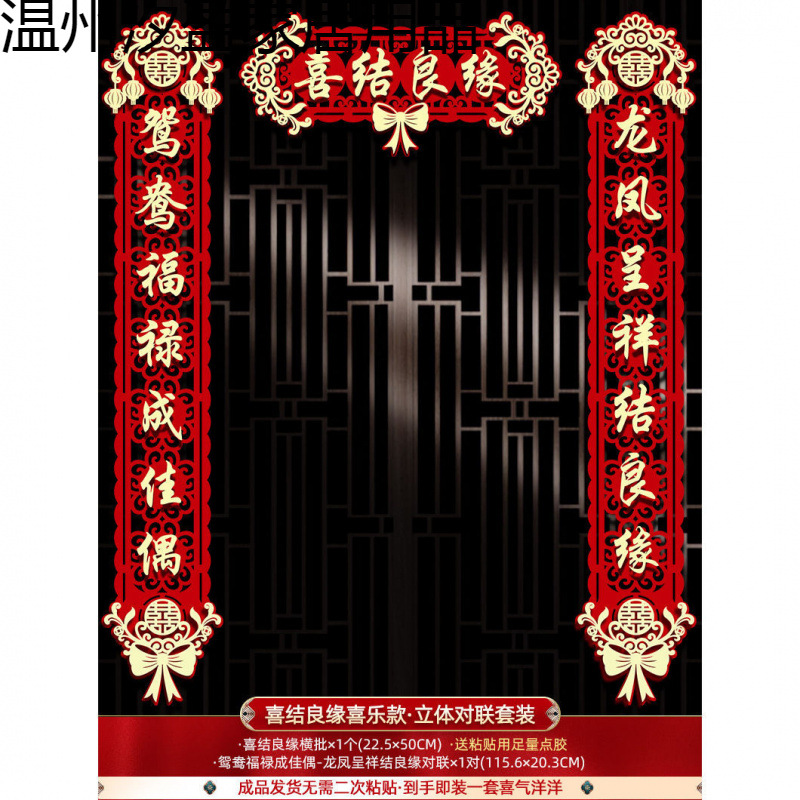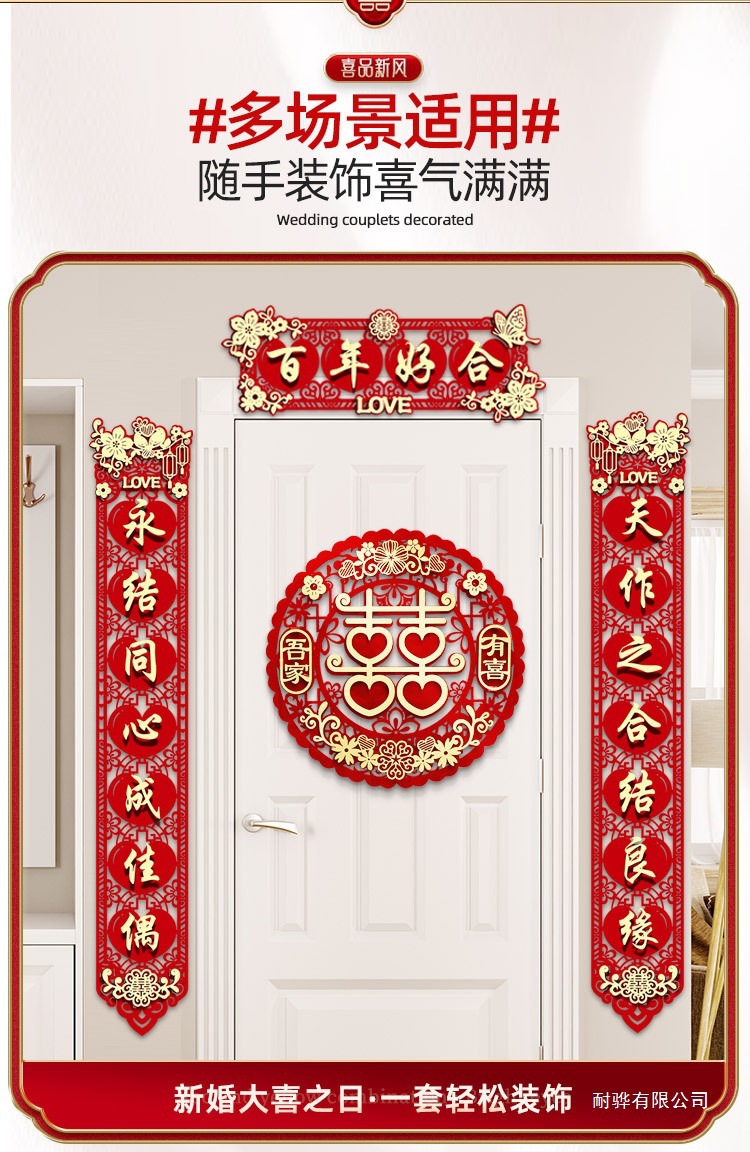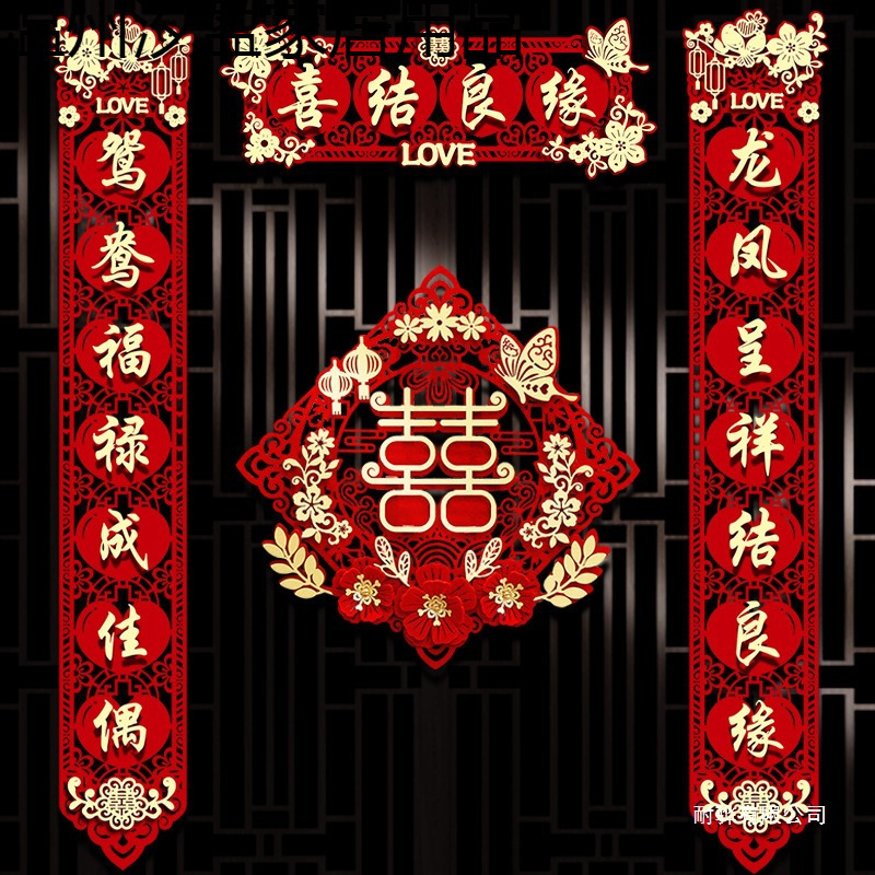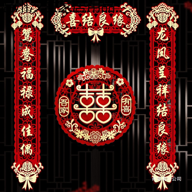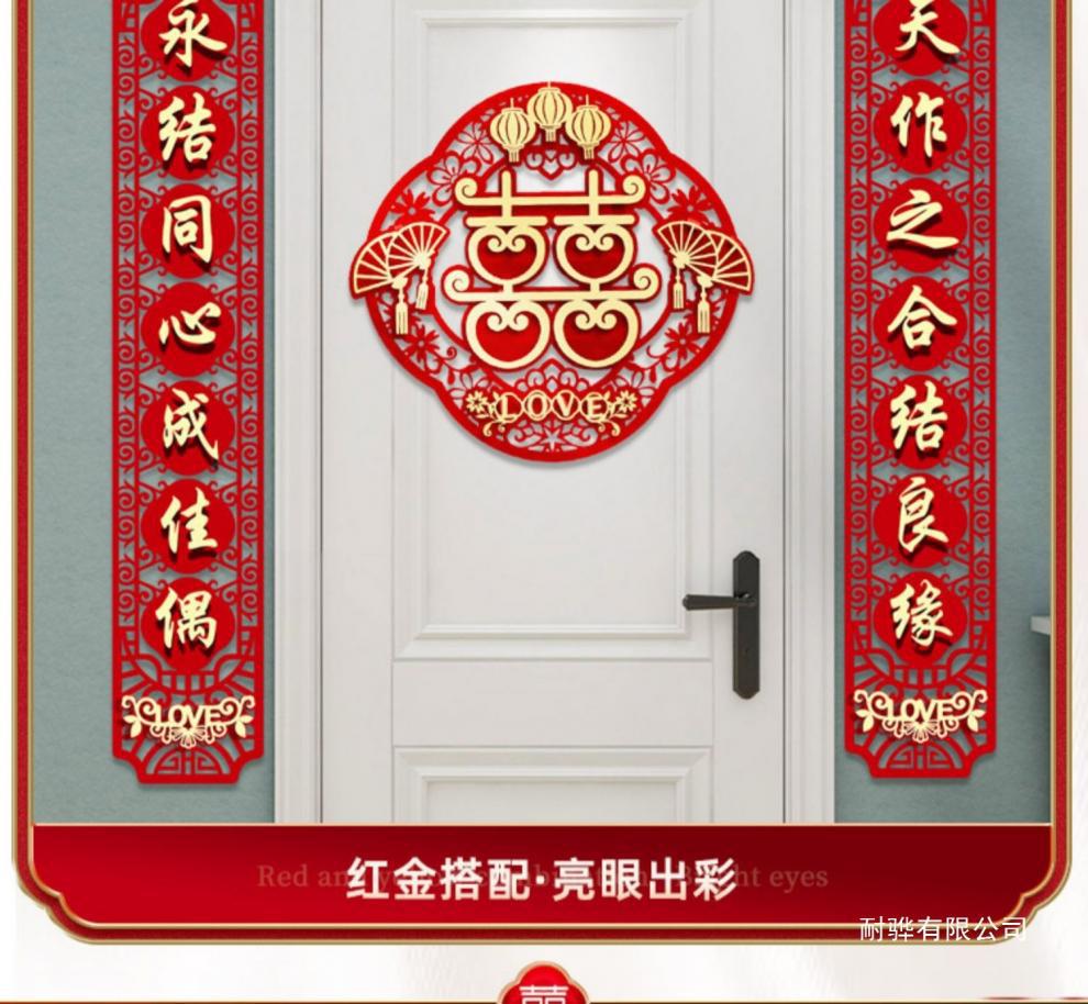 结婚对联男方大门女方出嫁喜联全套婚房门口房门磁吸婚礼用品大全