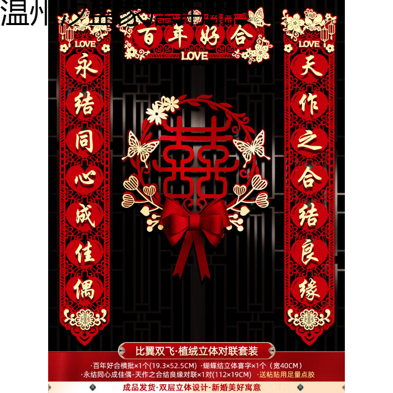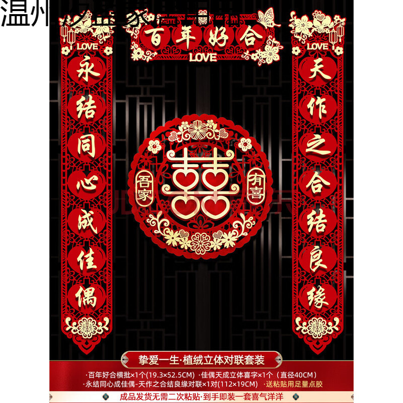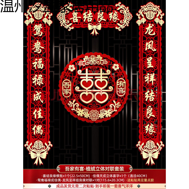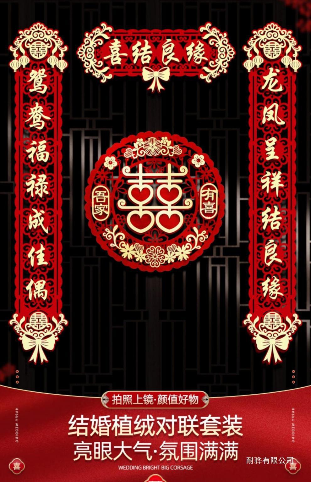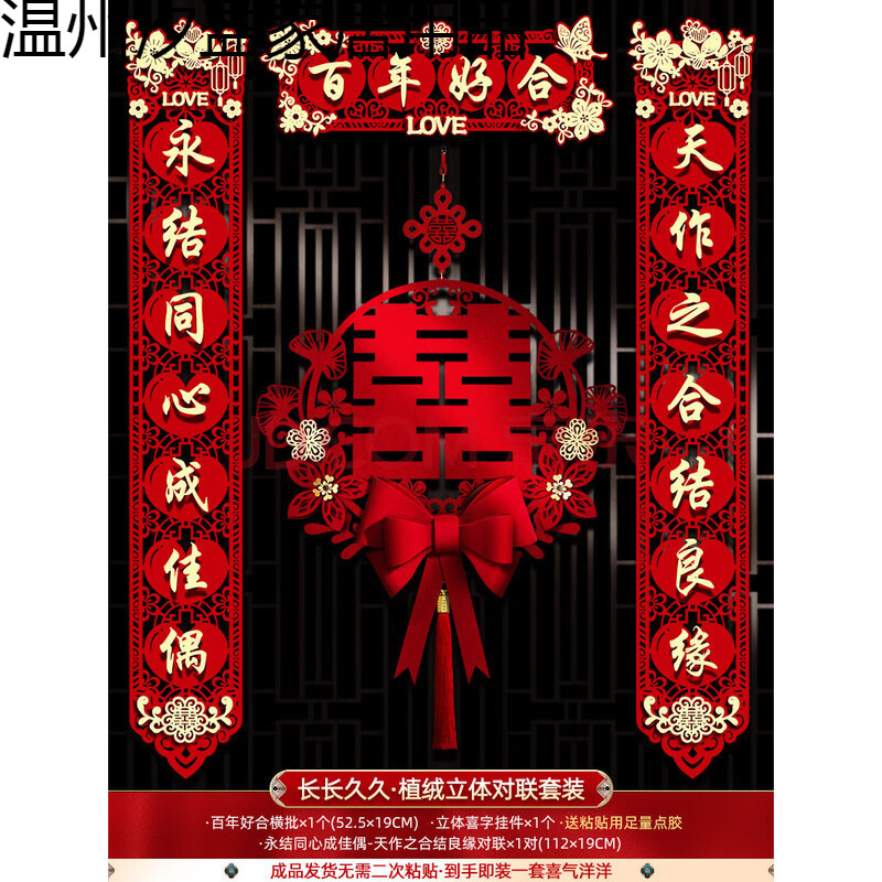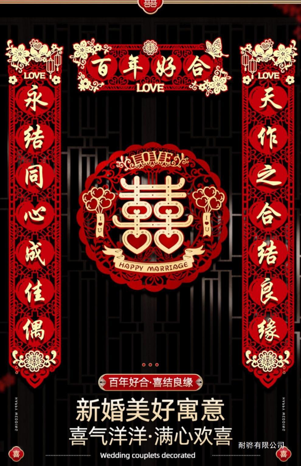 结婚对联男方大门女方出嫁喜联全套婚房门口房门磁吸婚礼用品大全