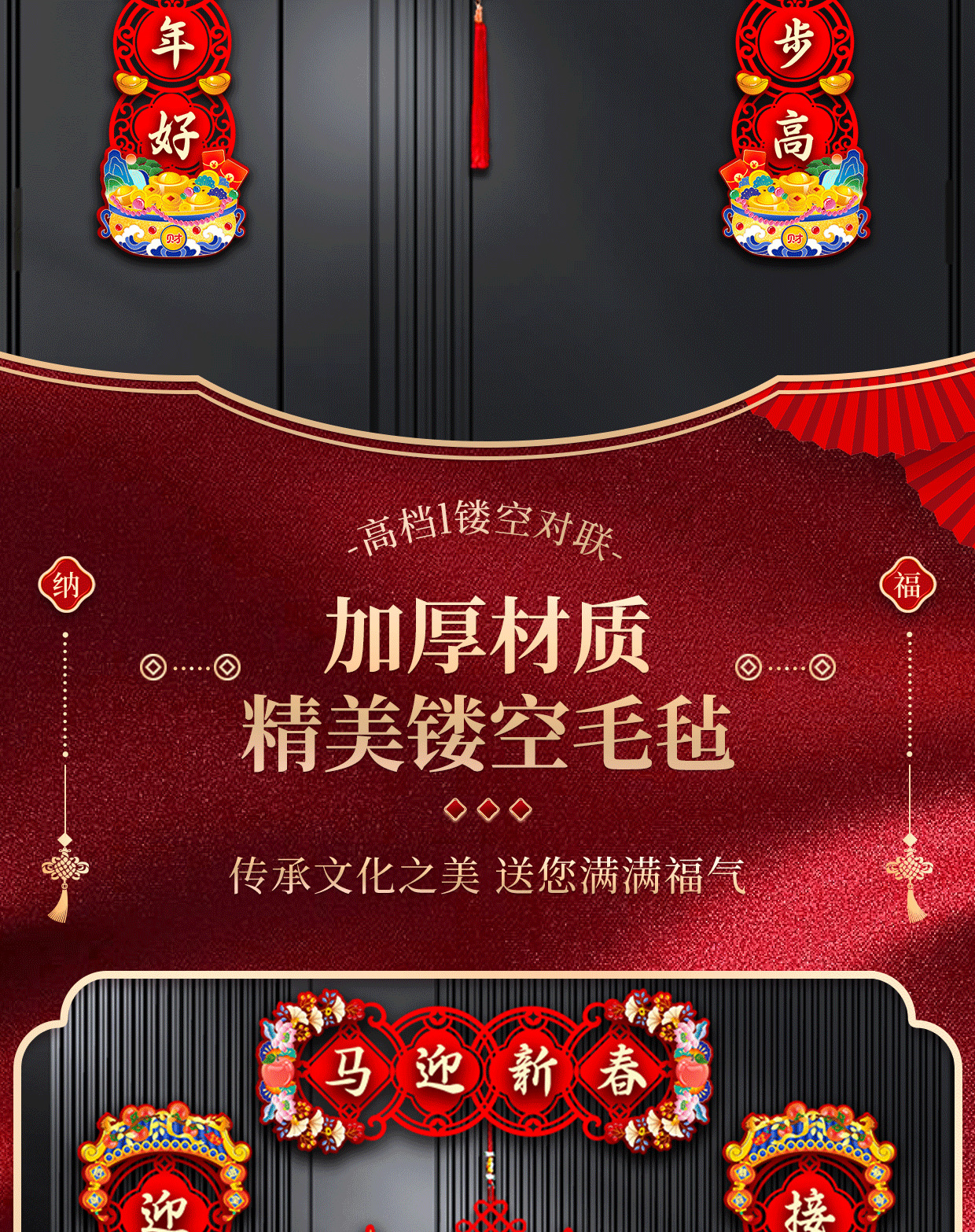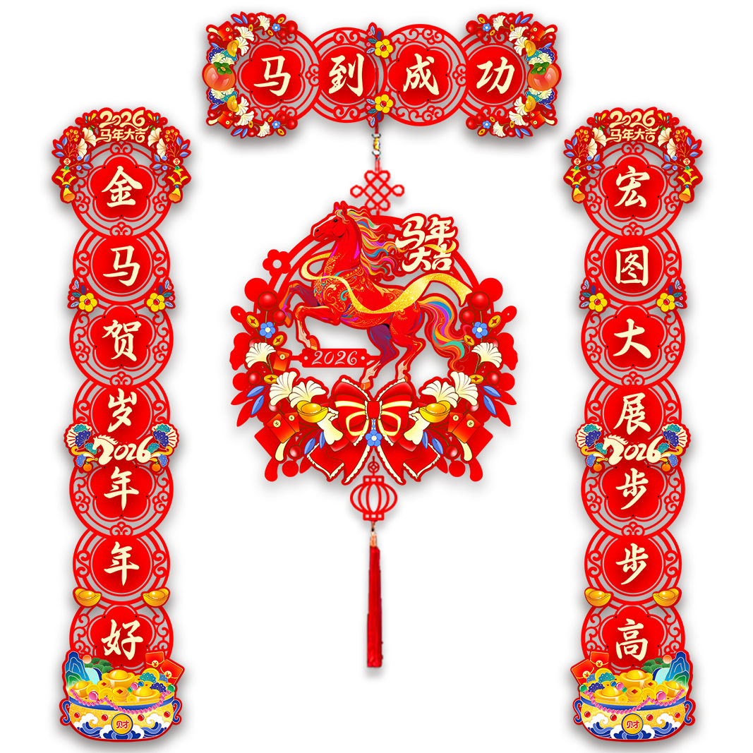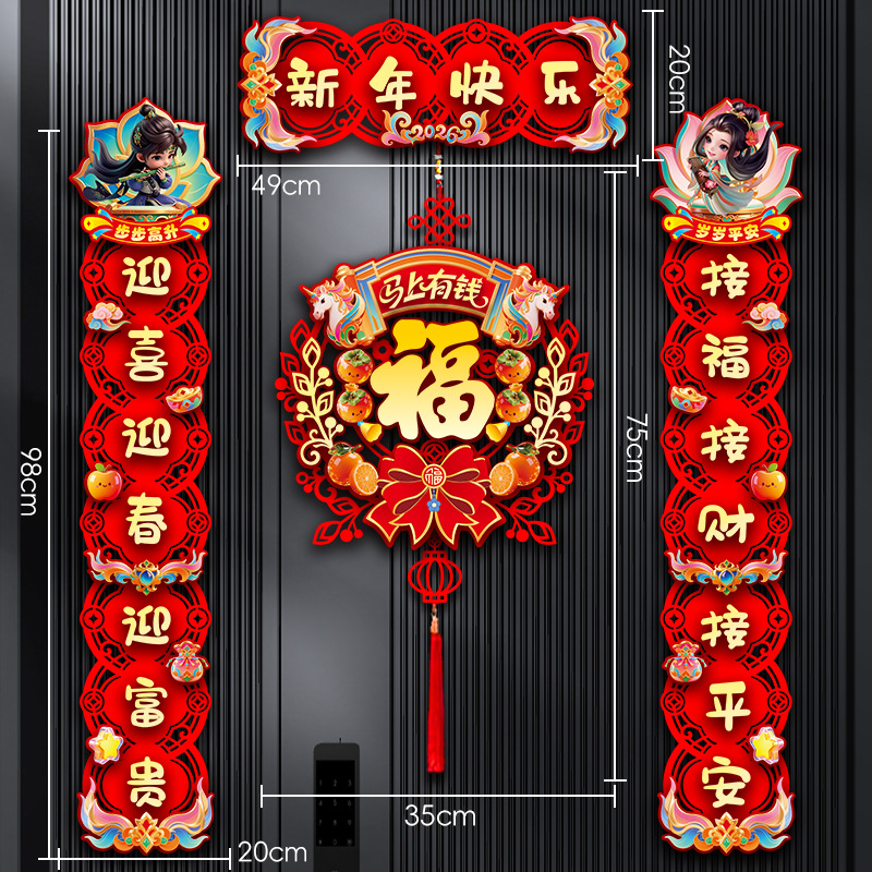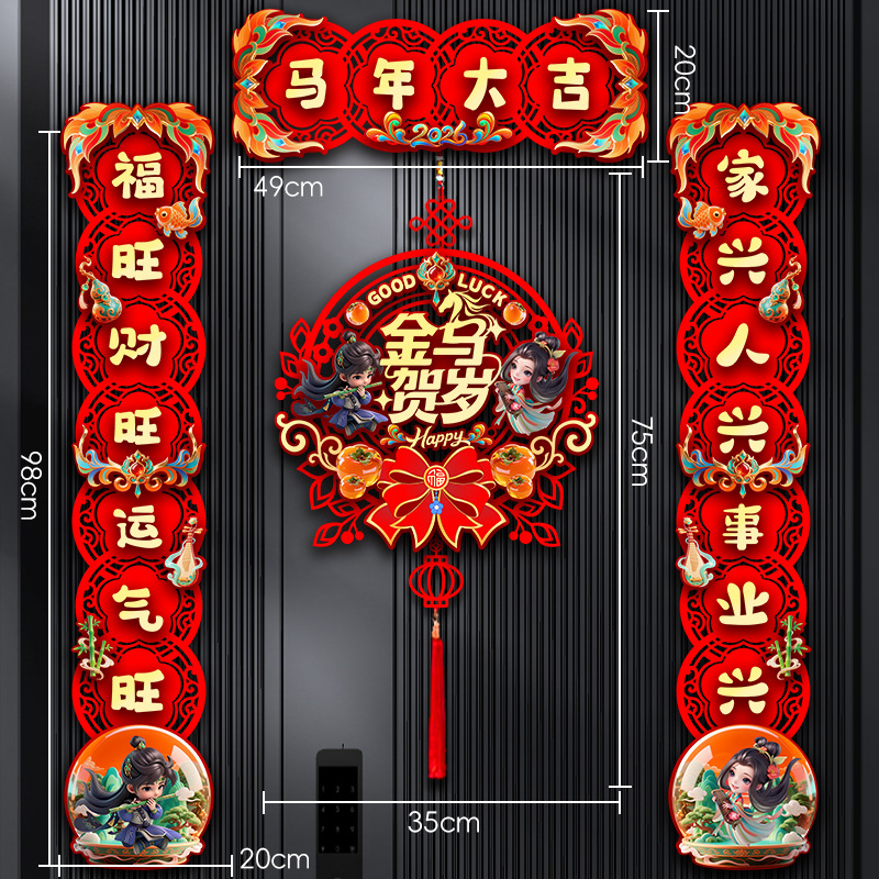 2026马年新款双层对联春节家用过年大门布置新年门贴装饰磁吸对联