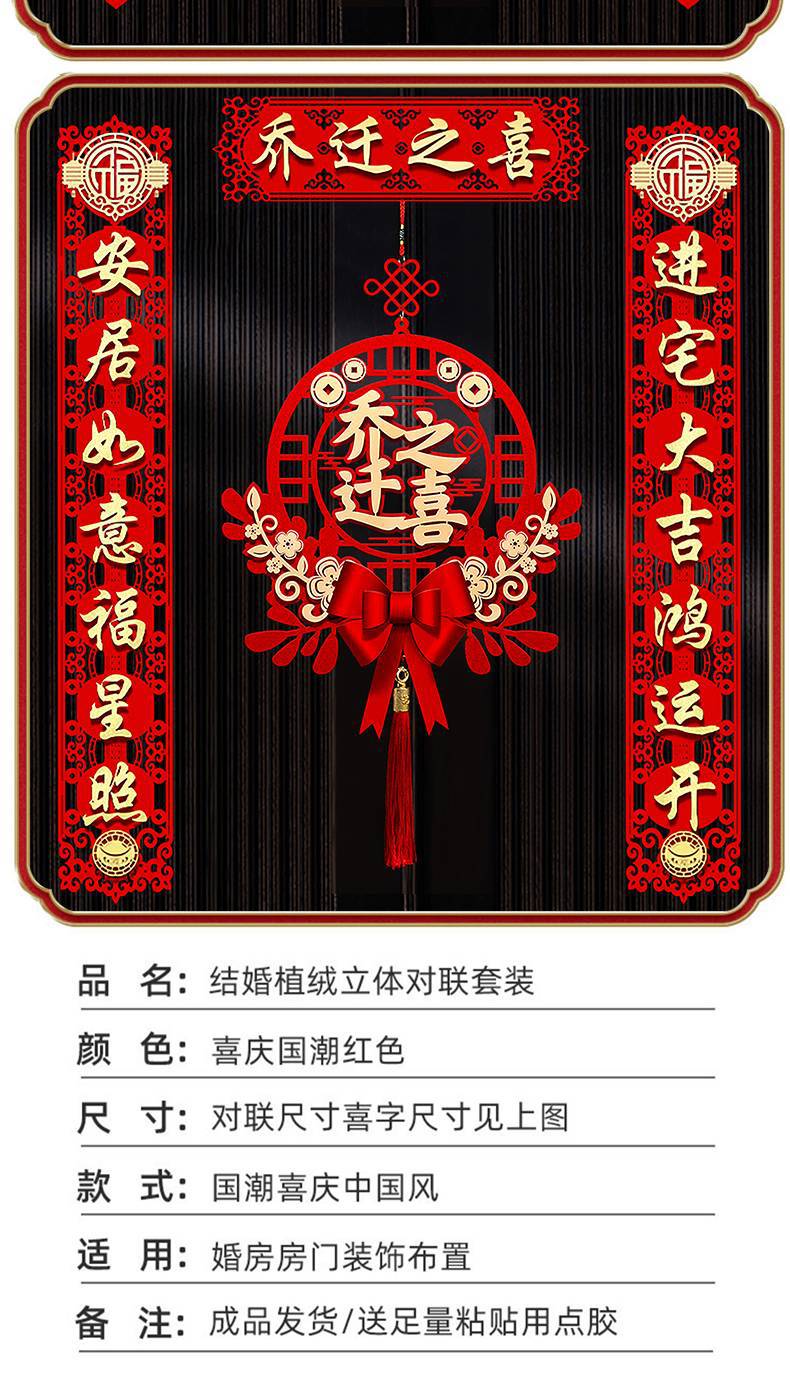 ✅乔迁之喜对联搬家仪式用品大门新居入宅入伙新房大门福字挂件新