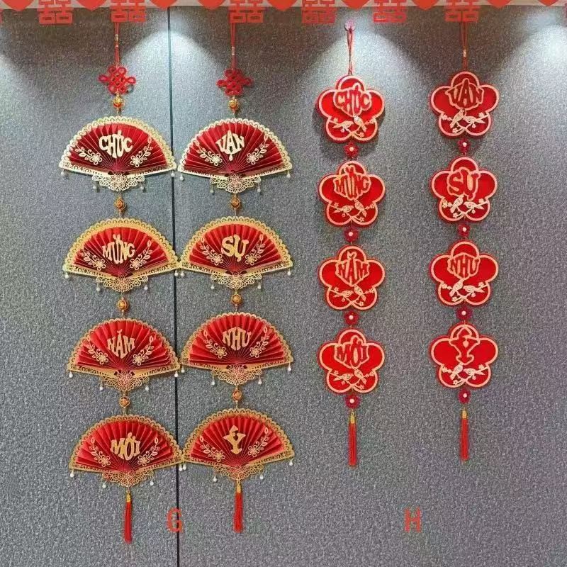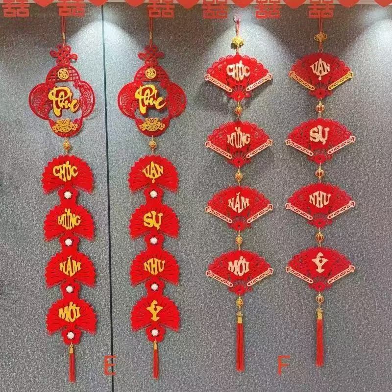越南春节挂件新年跨境挂饰对联 扇形无纺布绒布装饰过年批发年货