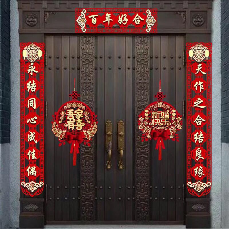 结婚对联喜联大门别墅农村自建房婚庆结婚男方女方喜字单元门整套