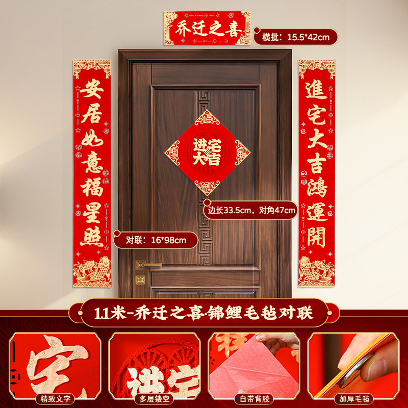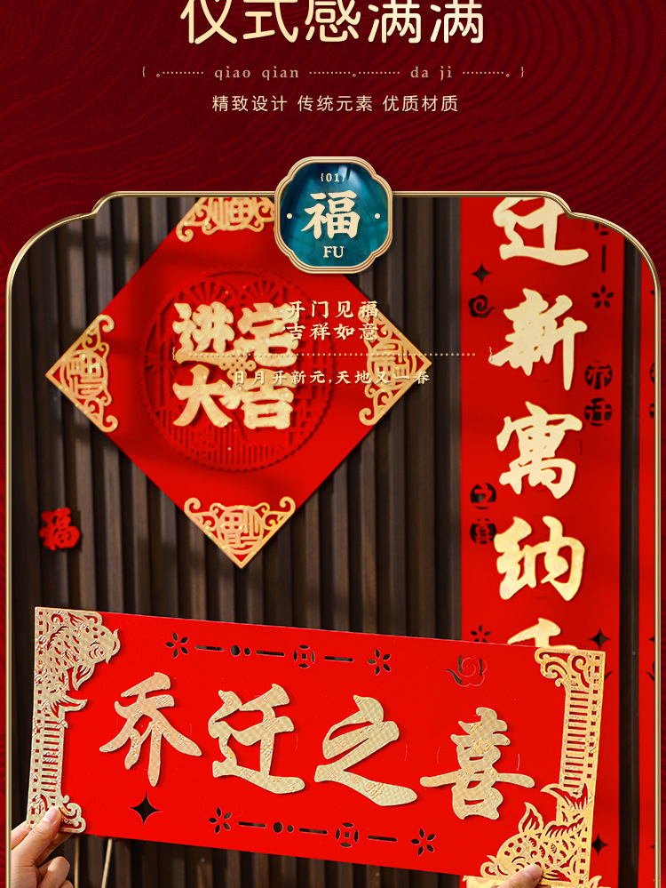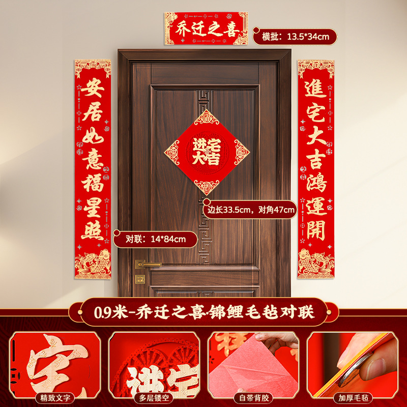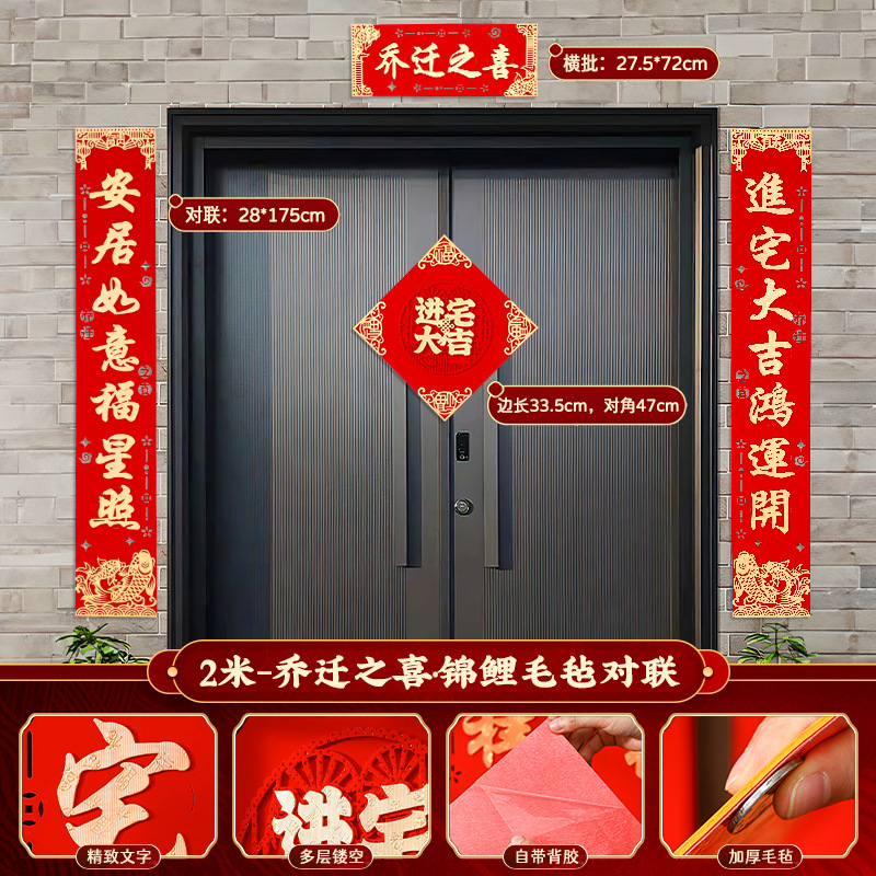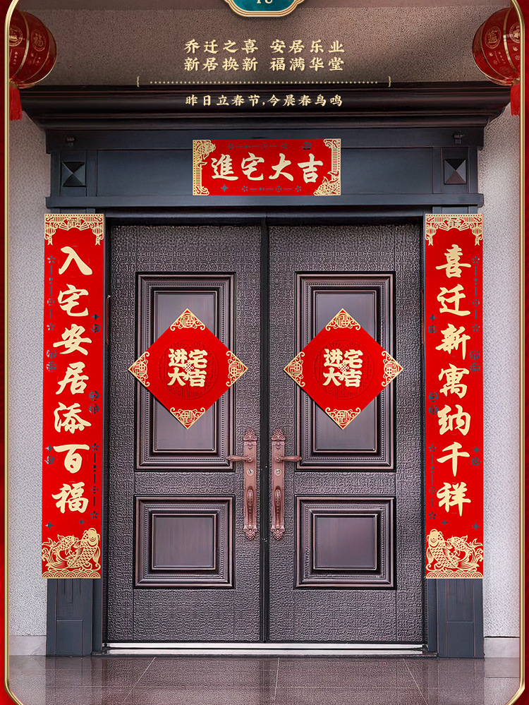 乔迁之喜对联搬家入宅仪式新居布置装饰用品入户门大尺寸高档门贴