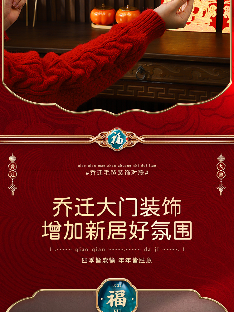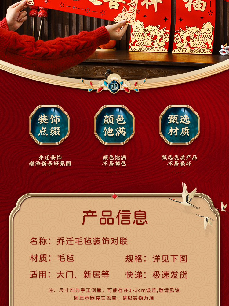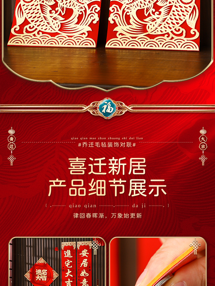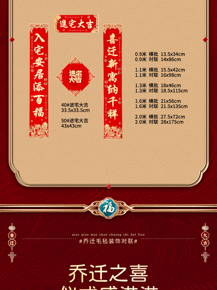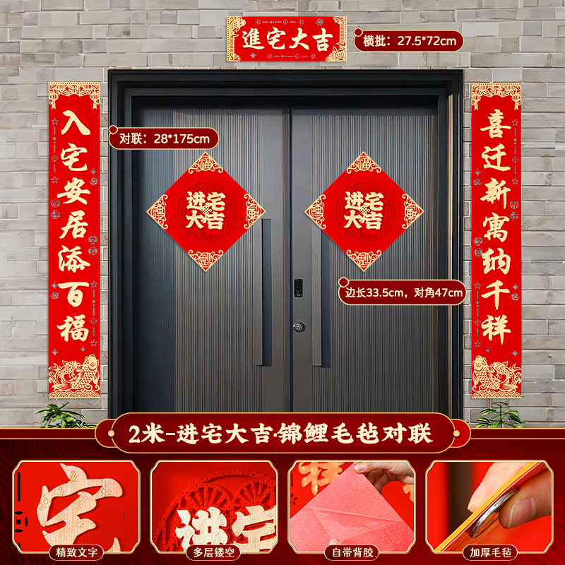 乔迁之喜对联搬家入宅仪式新居布置装饰用品入户门大尺寸高档门贴