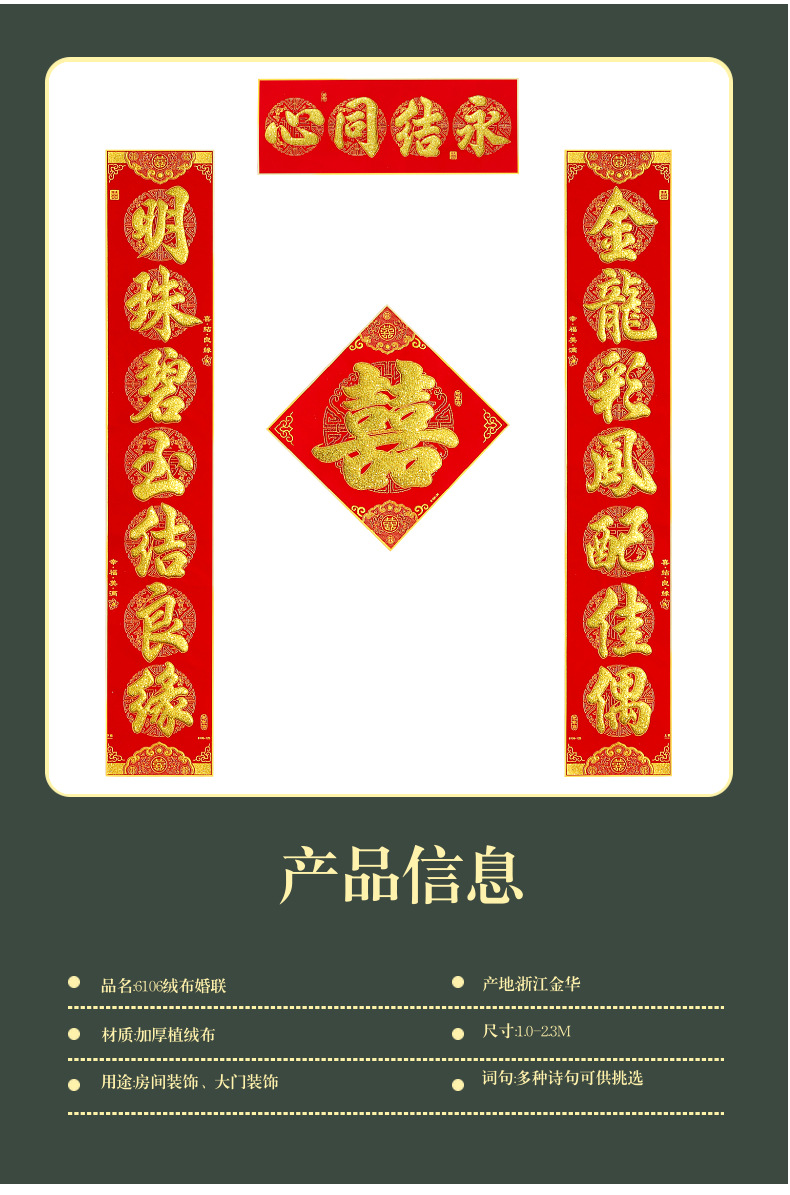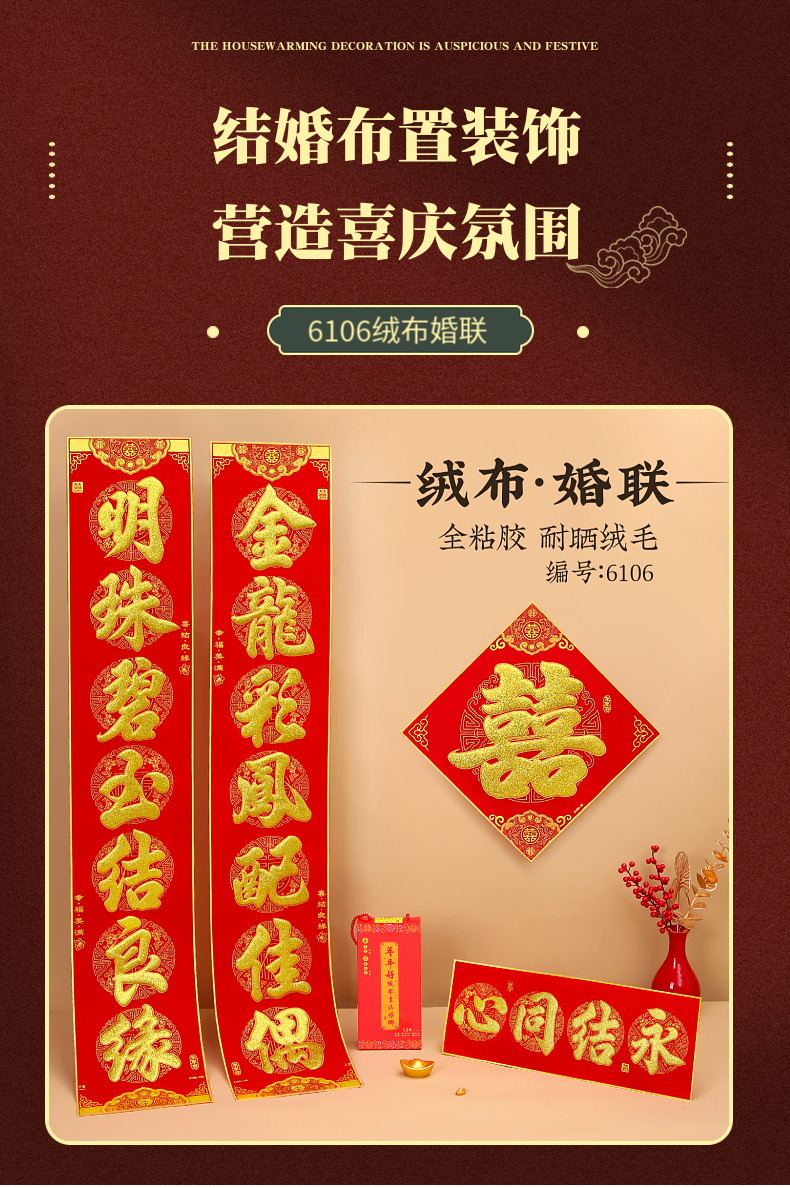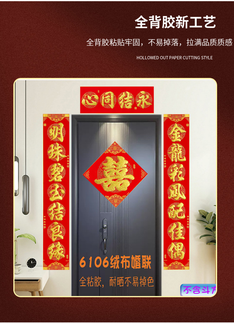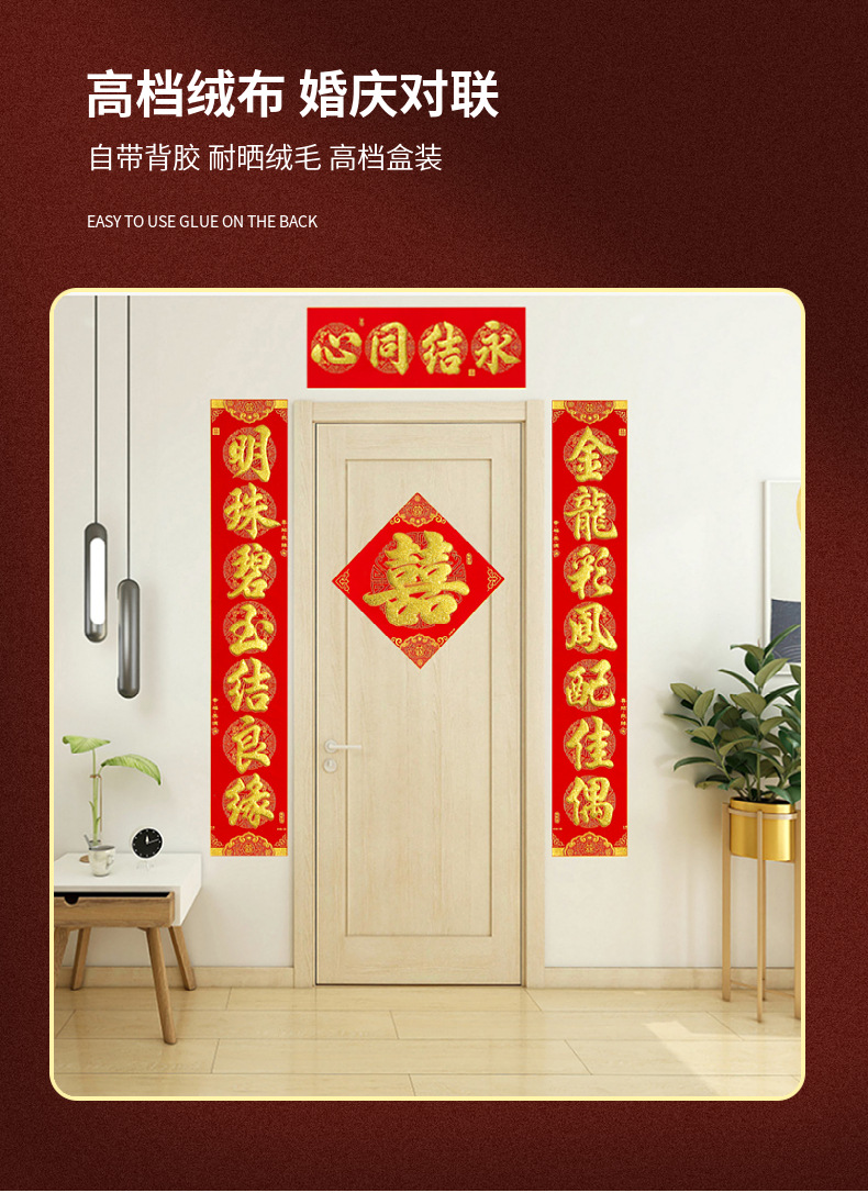 批发加厚植绒布结婚对联烫金结婚庆用品婚房装饰布置礼盒装喜对联